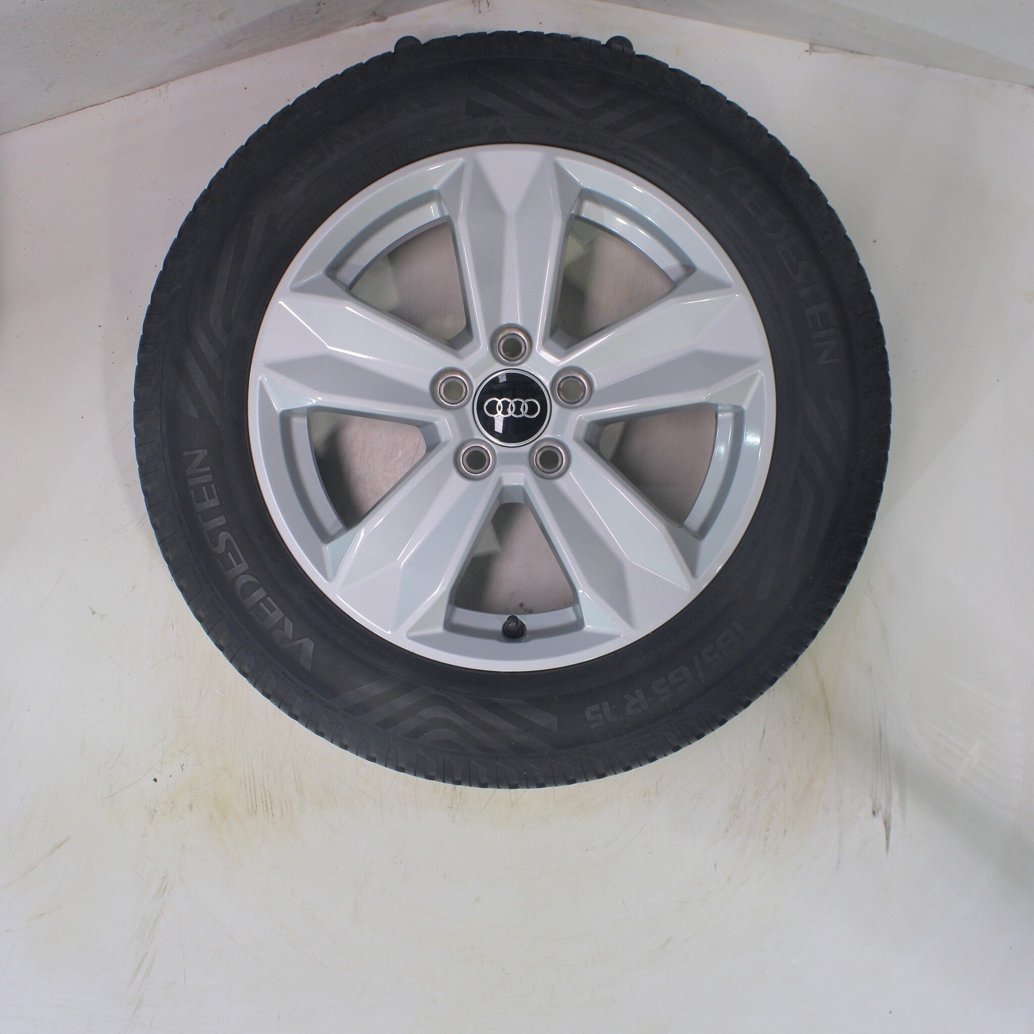 Originele wielset van Audi, 15 inch velgen met Vredestein Quatrac All-Season (4 seizoenen). Deze velgen zijn originele velgen van het merk Audi en geschikt voor: Audi A1 S1 82A 8X.