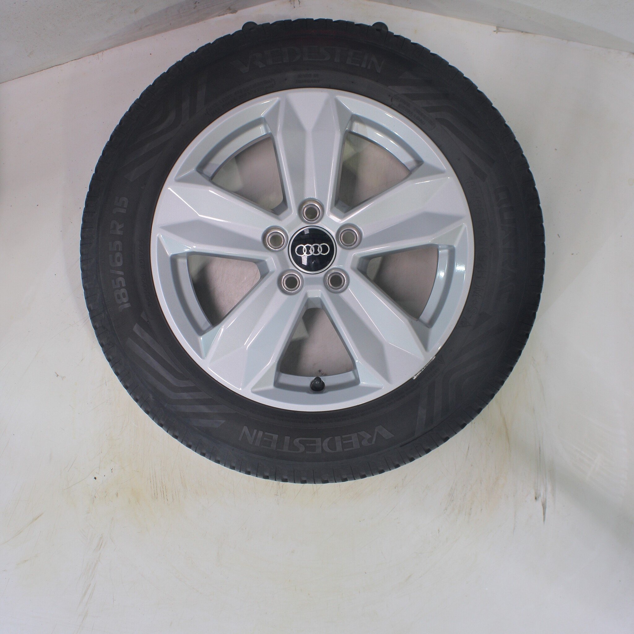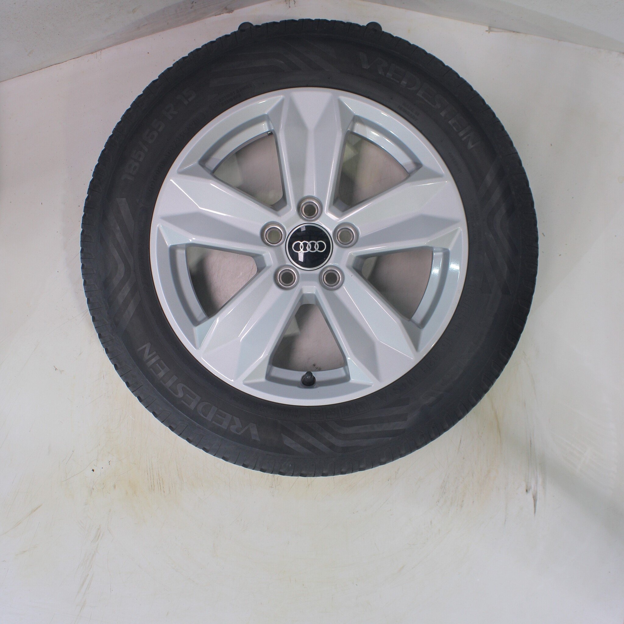 Originele wielset van Audi, 15 inch velgen met Vredestein Quatrac All-Season (4 seizoenen). Deze velgen zijn originele velgen van het merk Audi en geschikt voor: Audi A1 S1 82A 8X.