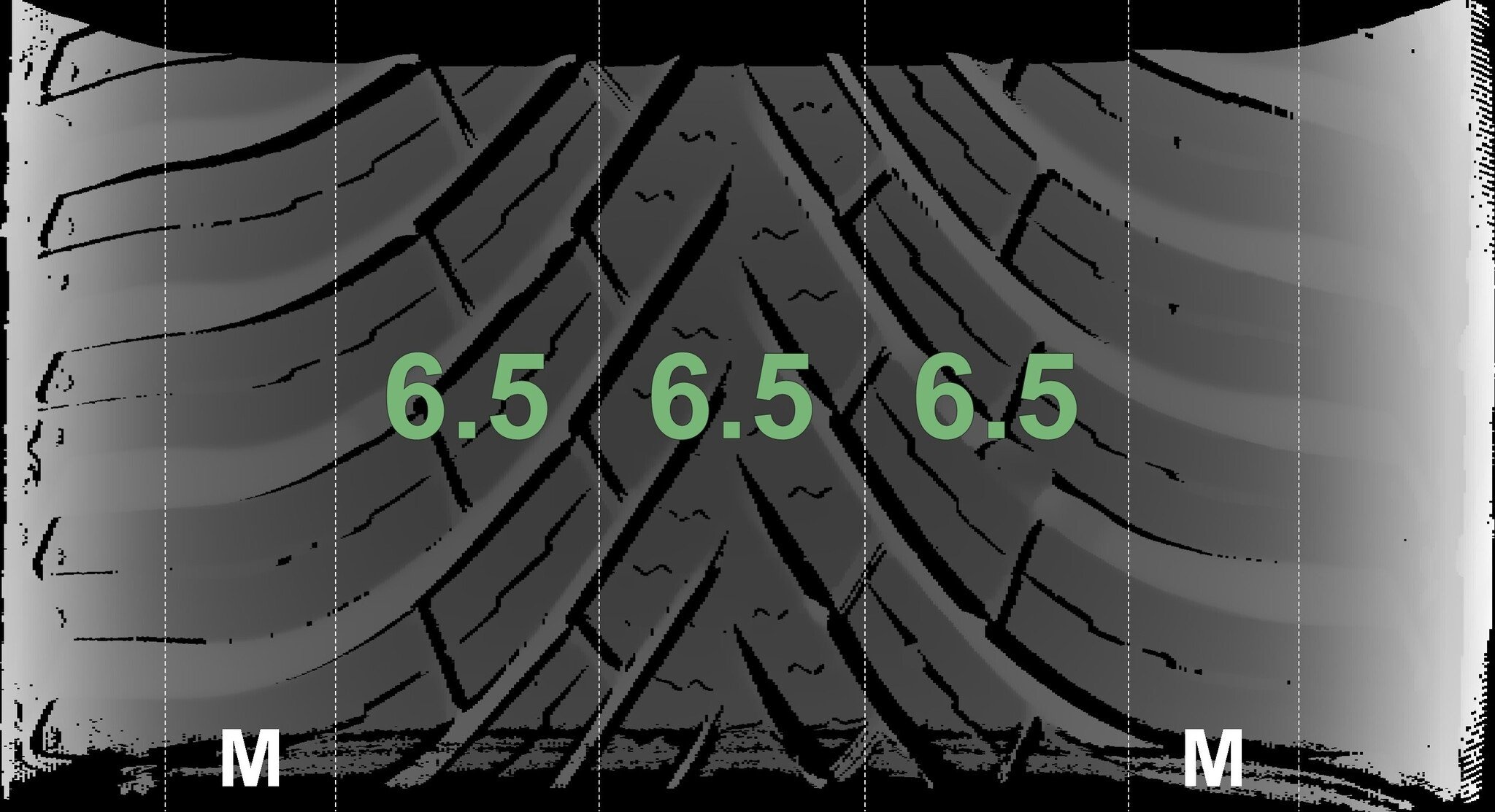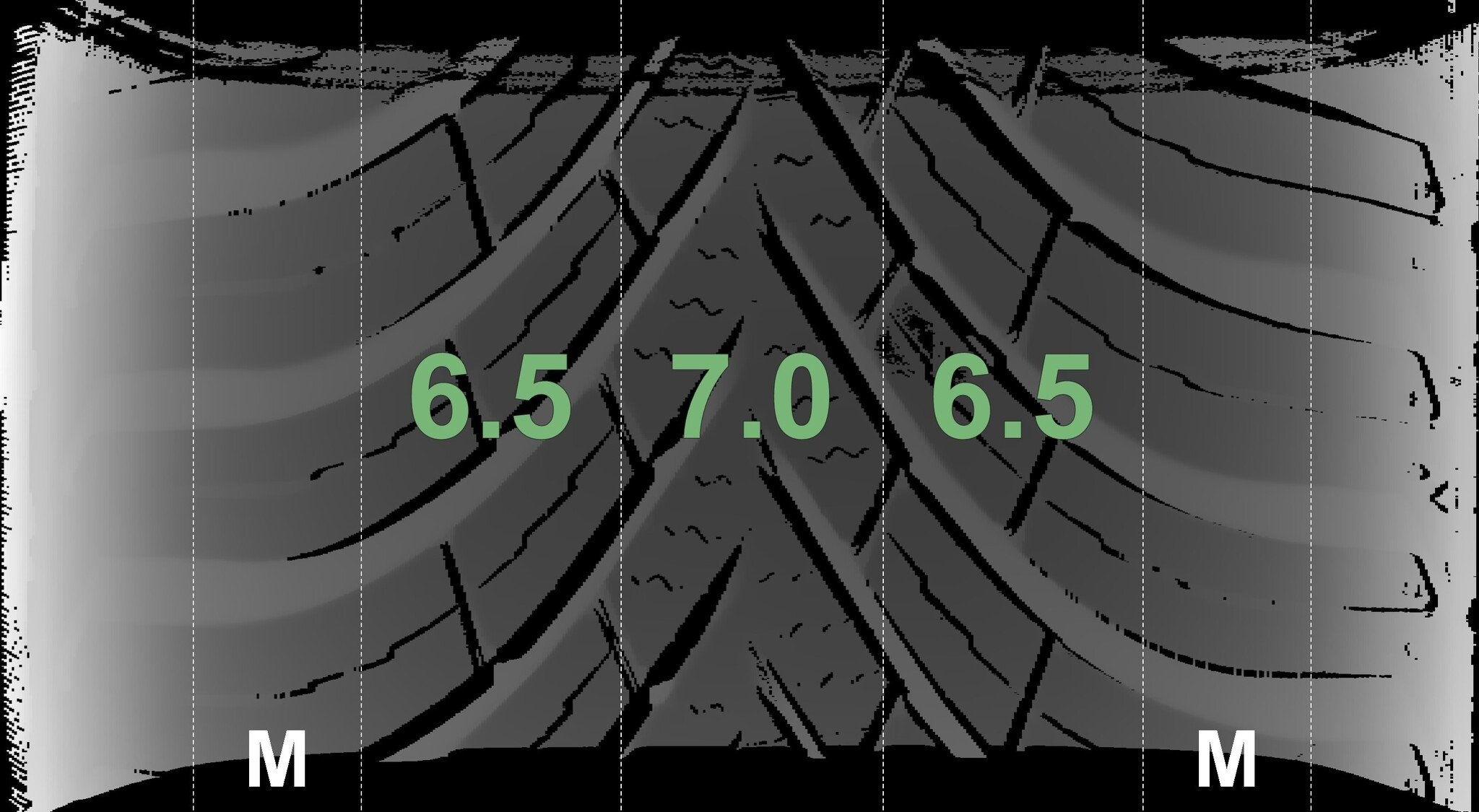 De gemeten profieldieptes en de details van de velgen zijn hierboven weergegeven.