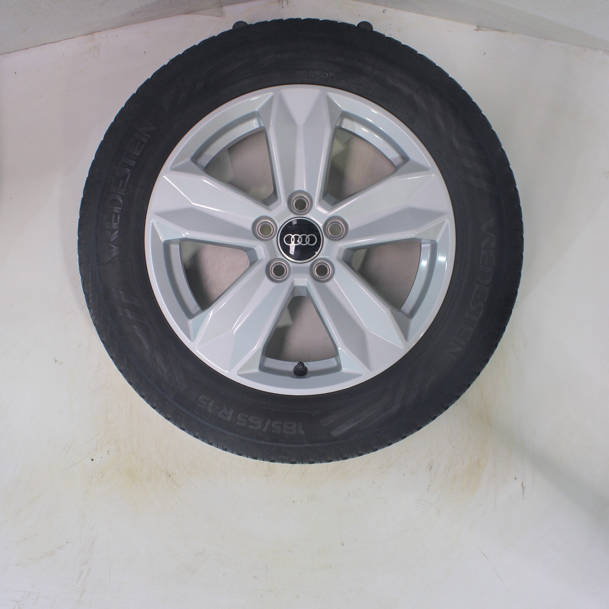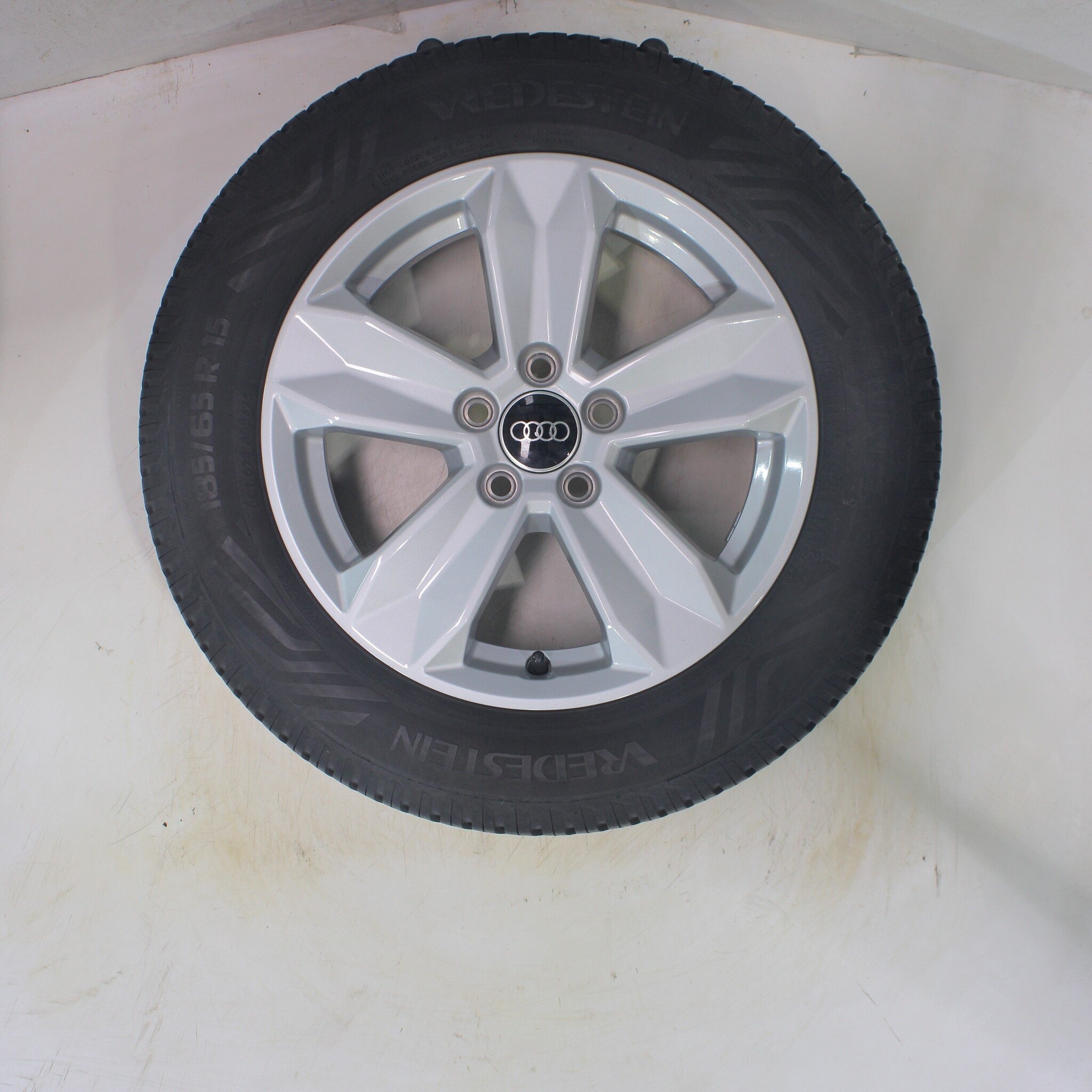 Originele wielset van Audi, 15 inch velgen met Vredestein Quatrac All-Season (4 seizoenen). Deze velgen zijn originele velgen van het merk Audi en geschikt voor: Audi A1 S1 82A 8X.