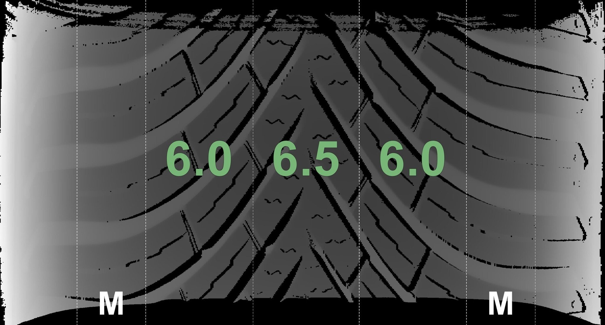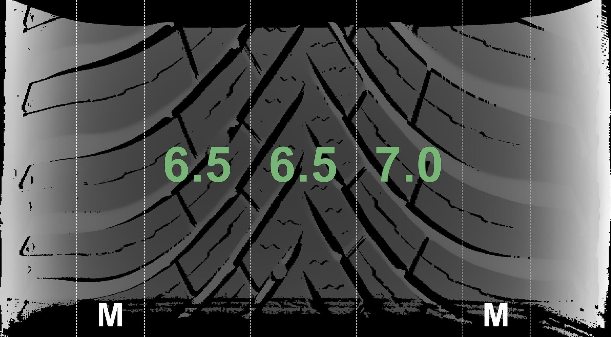 De gemeten profieldieptes en de details van de velgen zijn hierboven weergegeven.