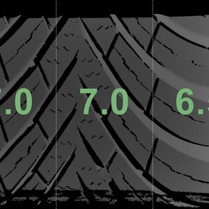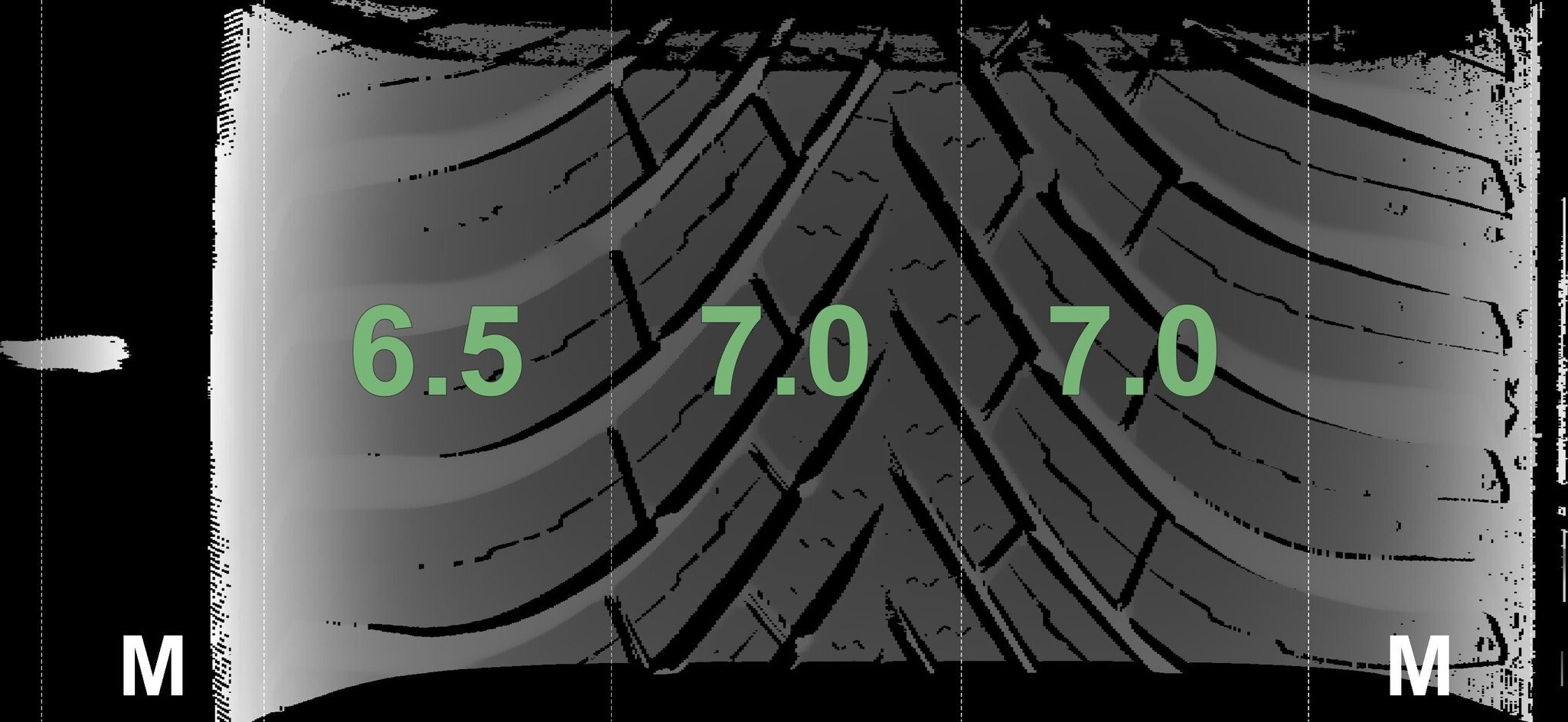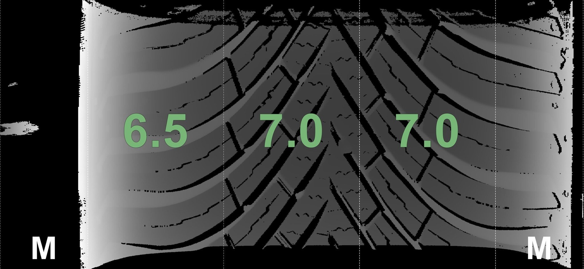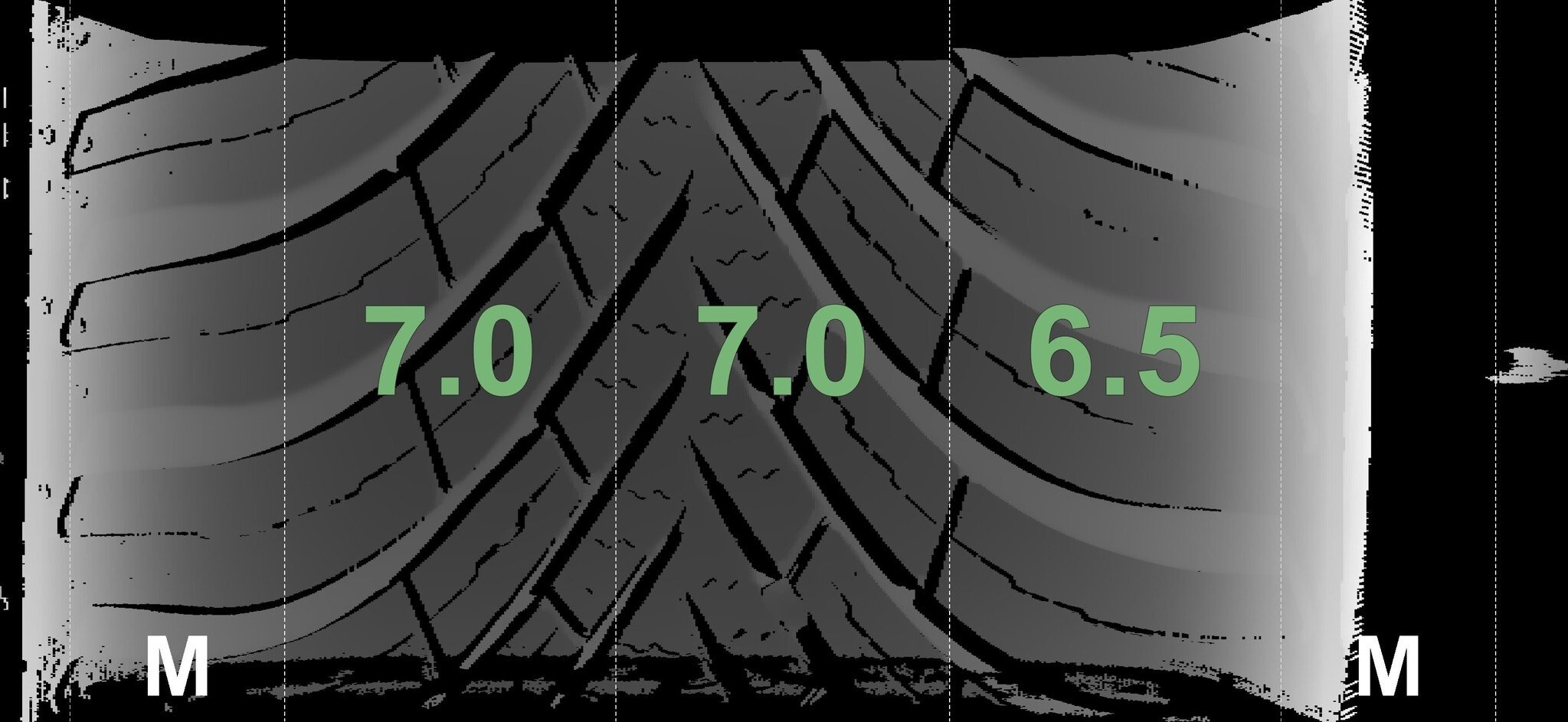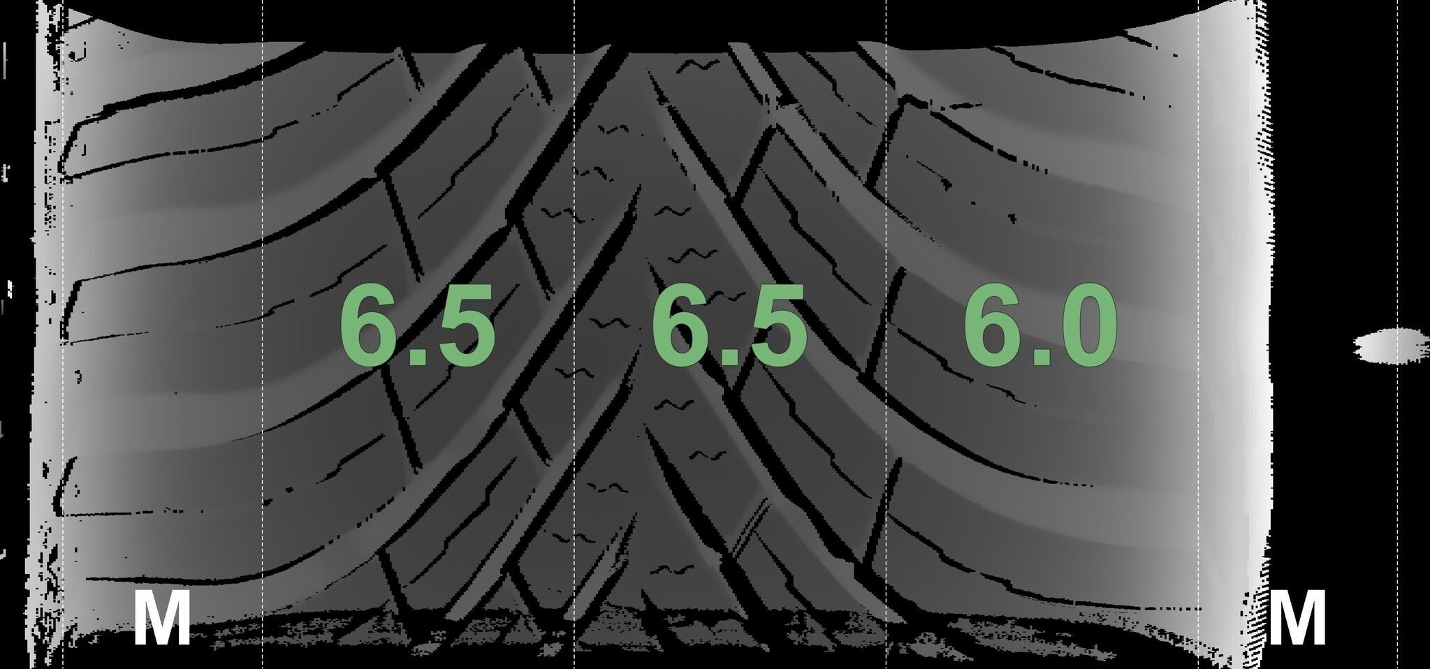De gemeten profieldieptes en de details van de velgen zijn hierboven weergegeven.
