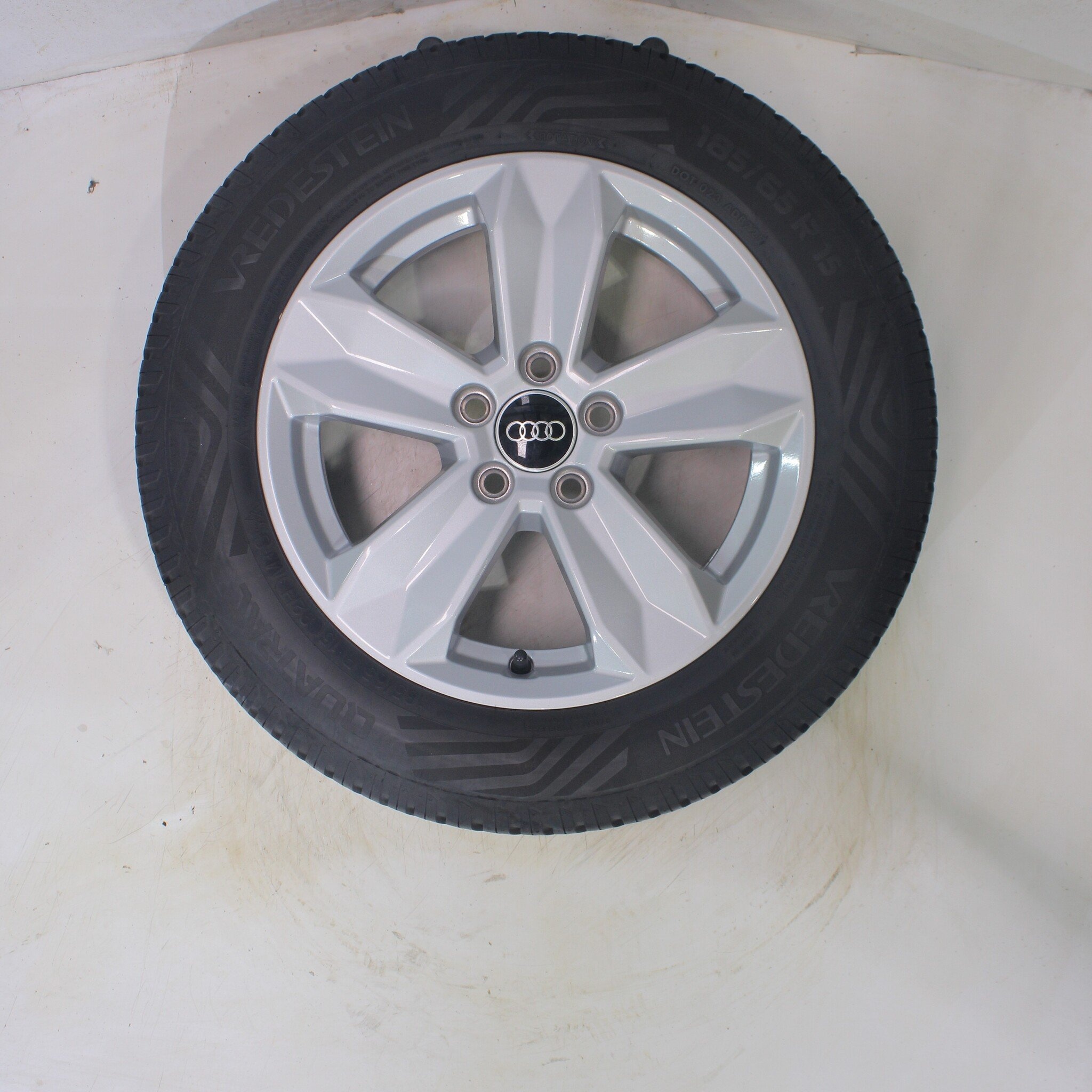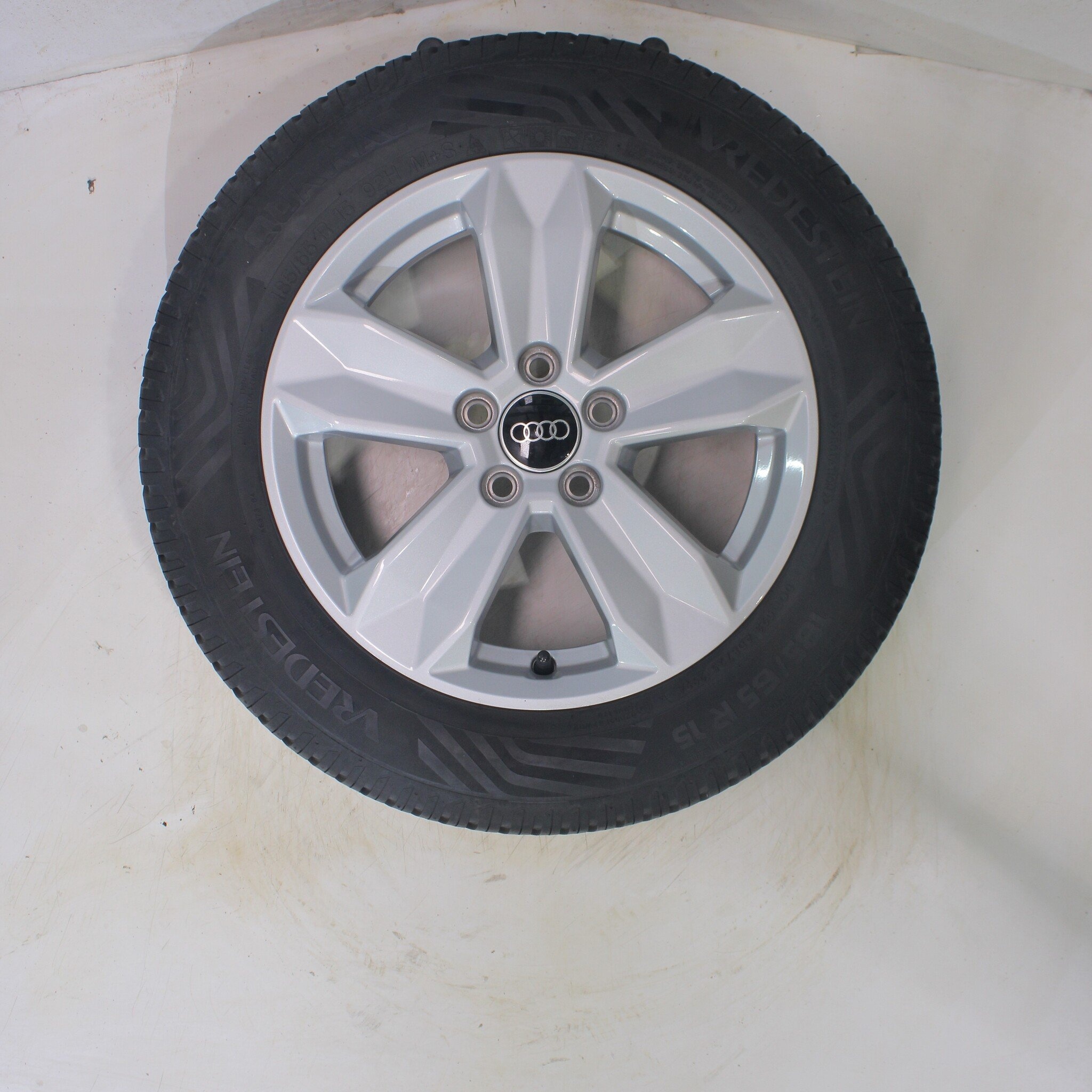 Originele wielset van Audi, 15 inch velgen met Vredestein Quatrac All-Season (4 seizoenen). Deze velgen zijn originele velgen van het merk Audi en geschikt voor: Audi A1 S1 82A 8X.