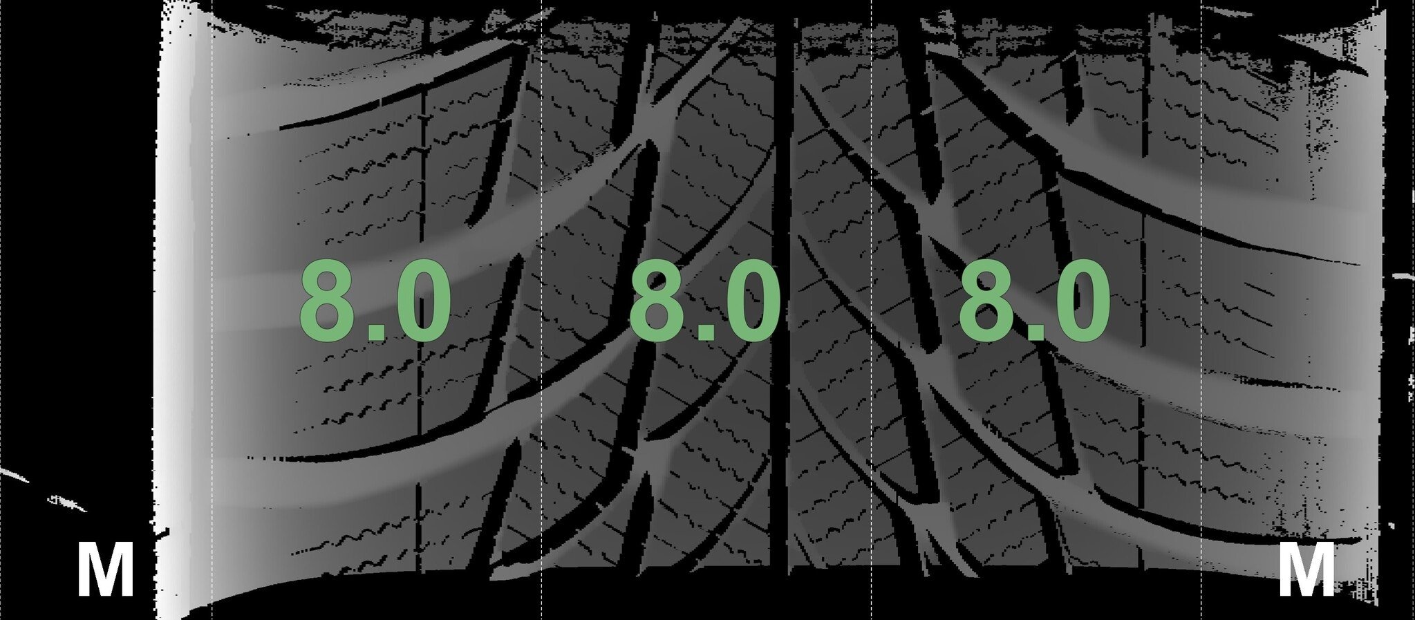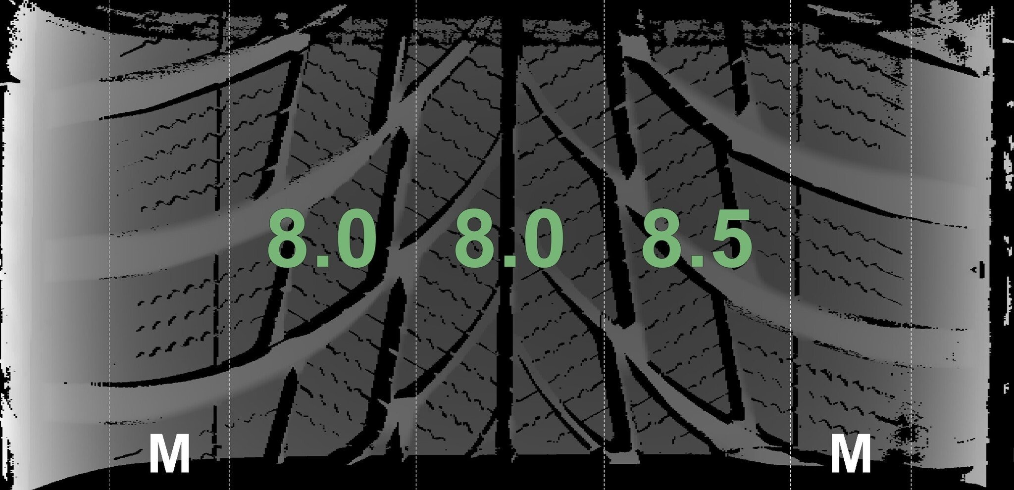 De gemeten profieldieptes en de details van de velgen zijn hierboven weergegeven.