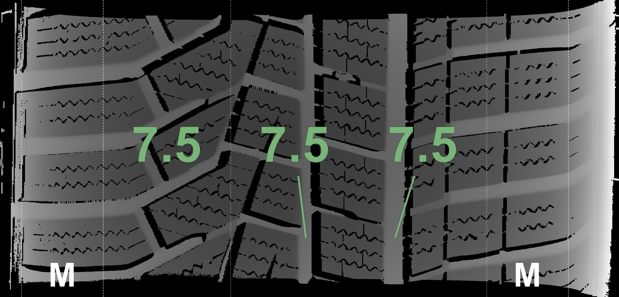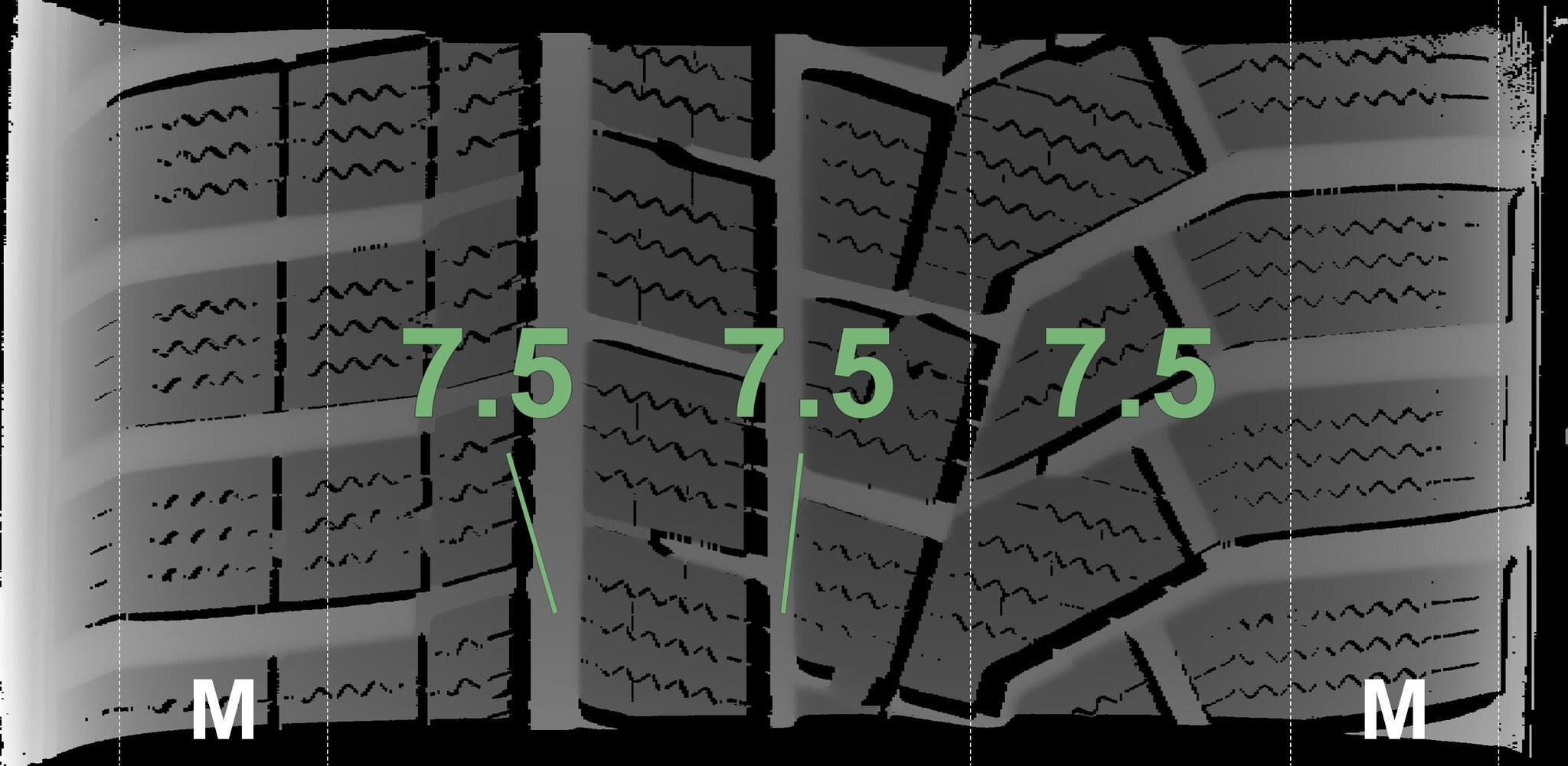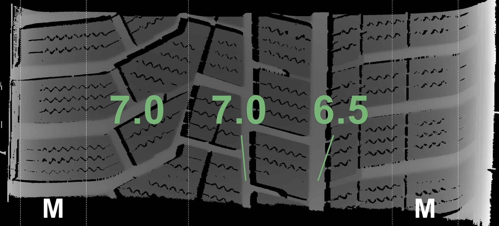 De gemeten profieldieptes en de details van de velgen zijn hierboven weergegeven.