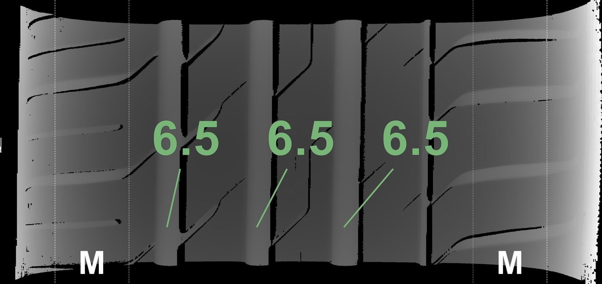 | Conditie | Profieldiepte | DOT | Rechts Achter | Demo nopjes nog zichtbaar | 6.5 mm | 2921 |