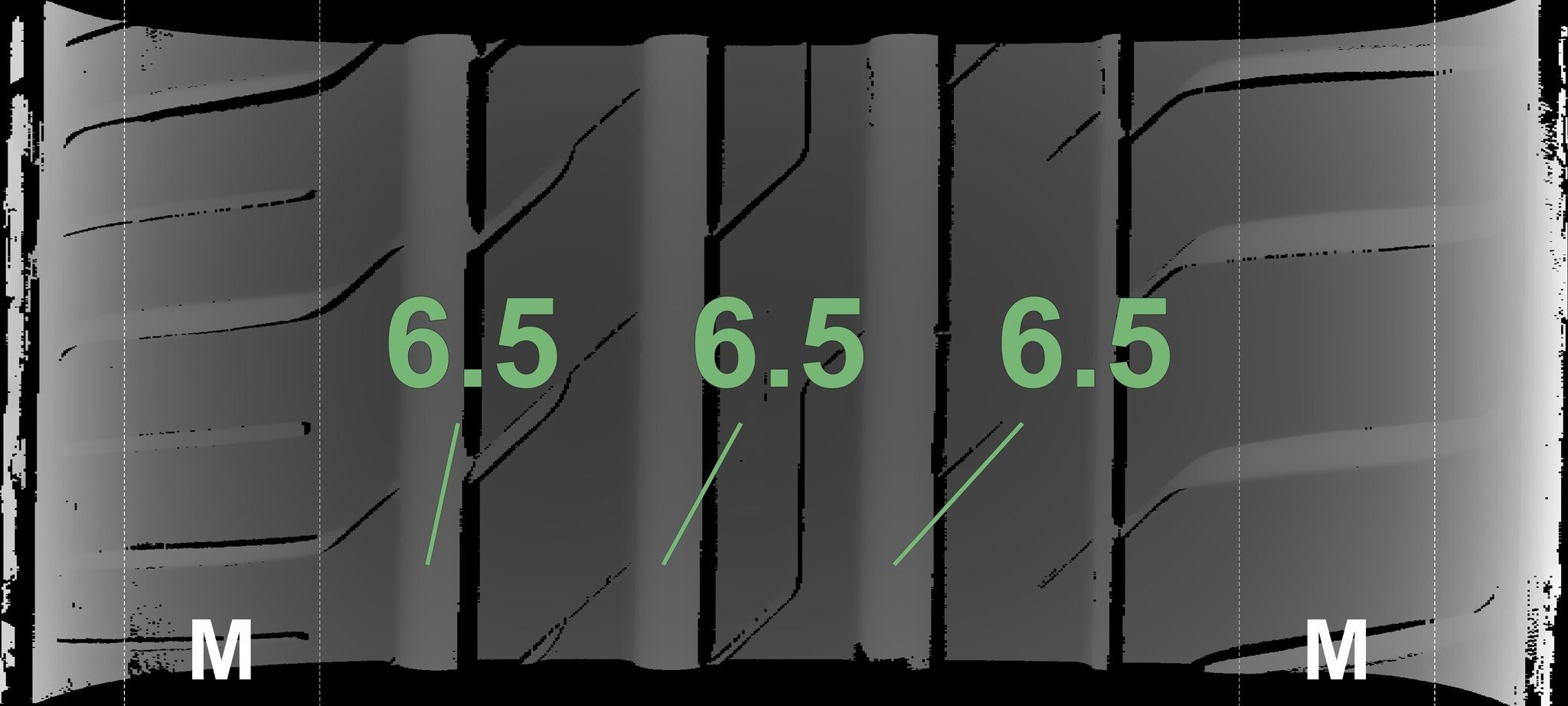 | Conditie | Profieldiepte | DOT | Rechts Voor | Demo nopjes nog zichtbaar | 6.5 mm | 3021 |