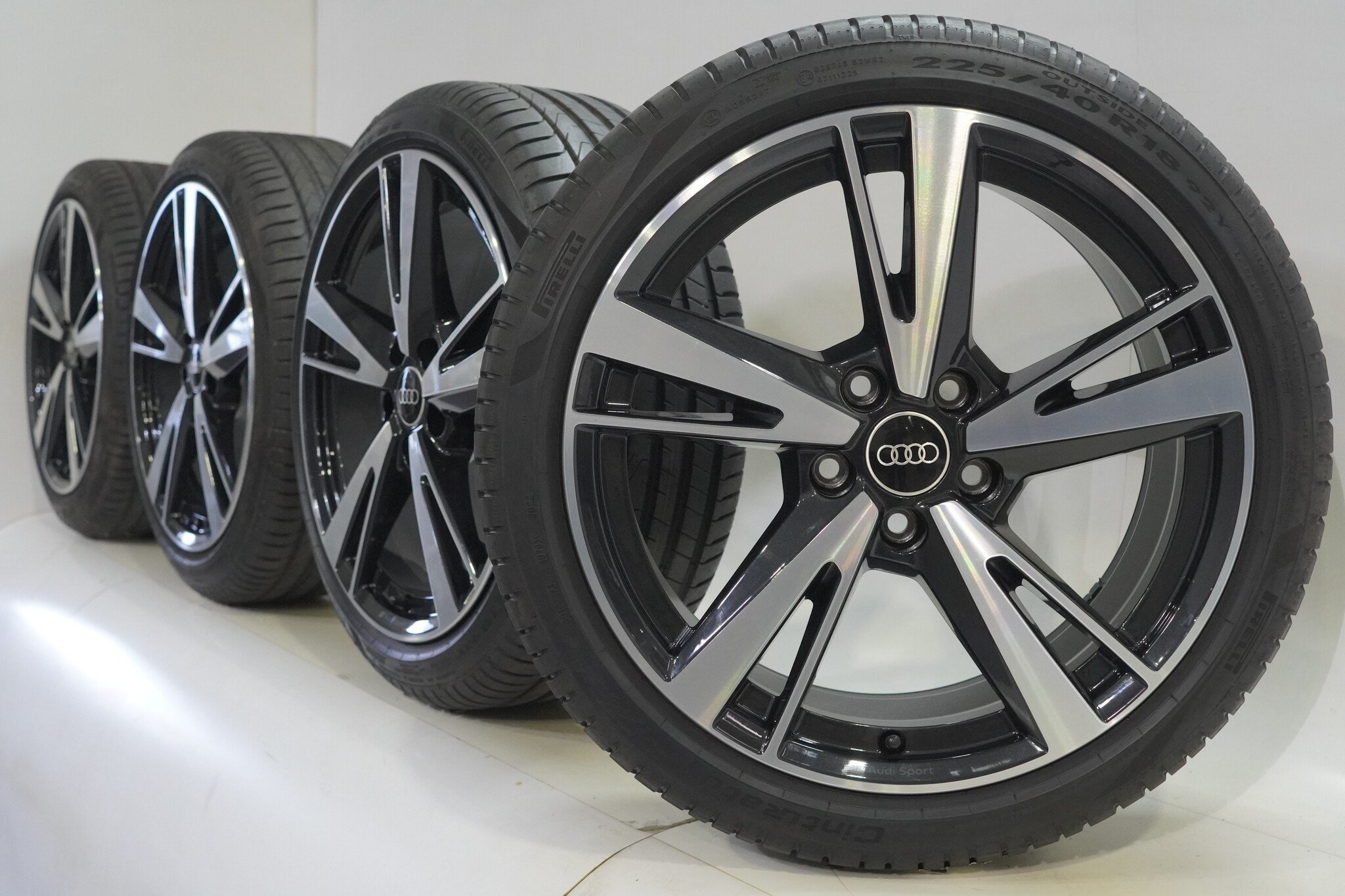 Originele wielset van Audi, 18 inch velgen met Pirelli Cinturato P7 Zomerbanden. Deze velgen zijn originele velgen van het merk Audi en geschikt voor: Audi A3 S3 8Y 8V.