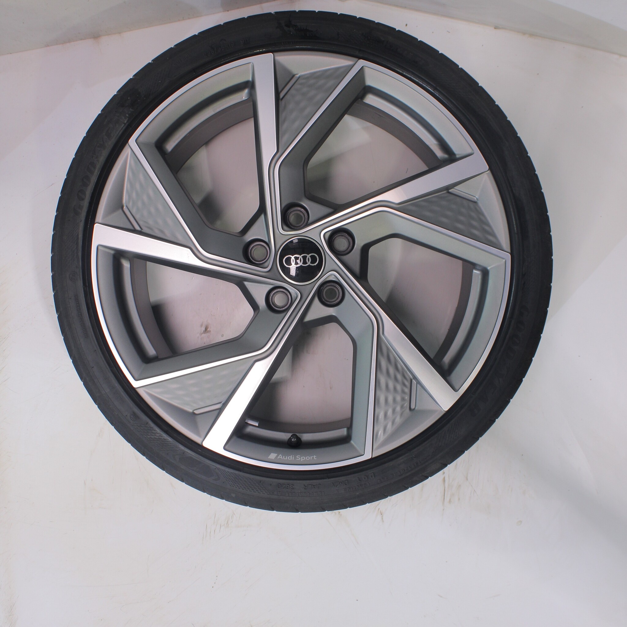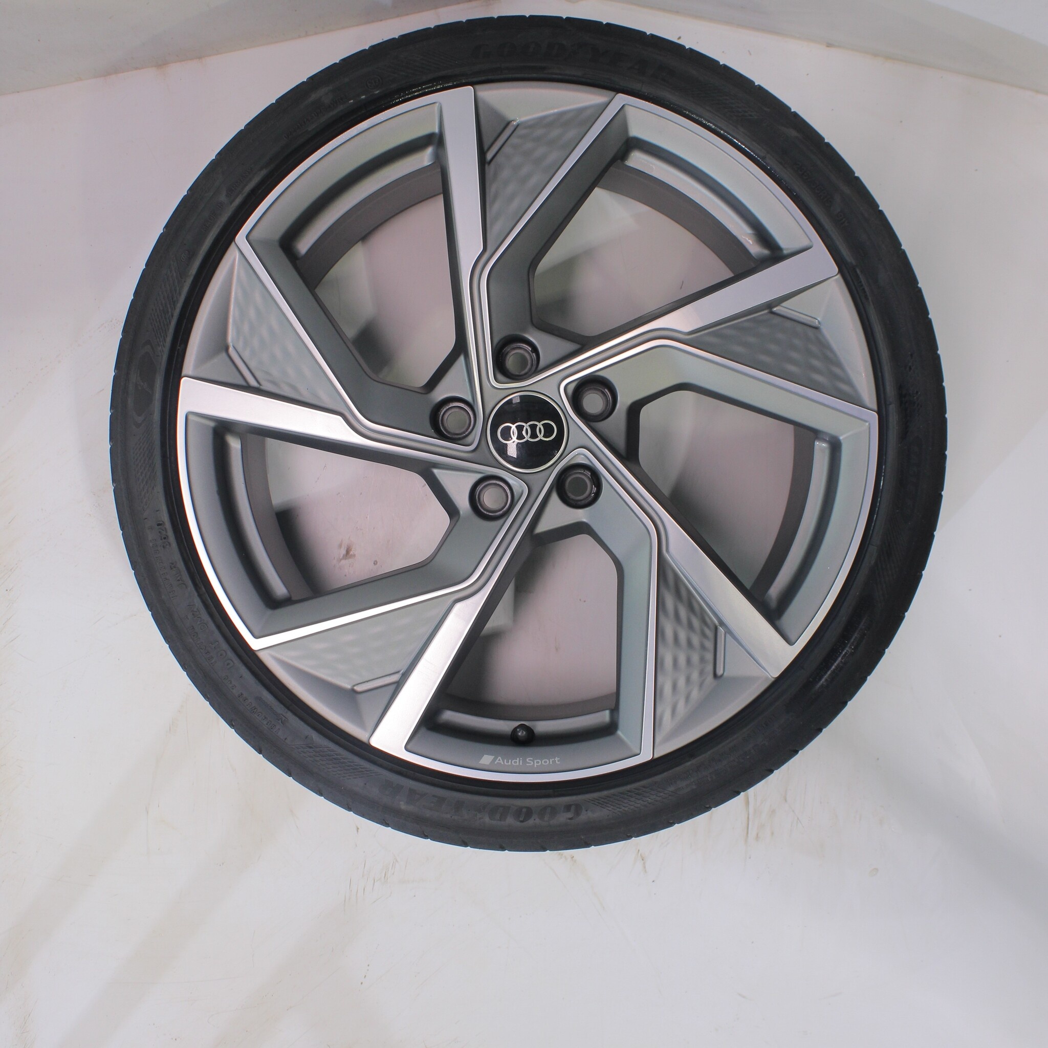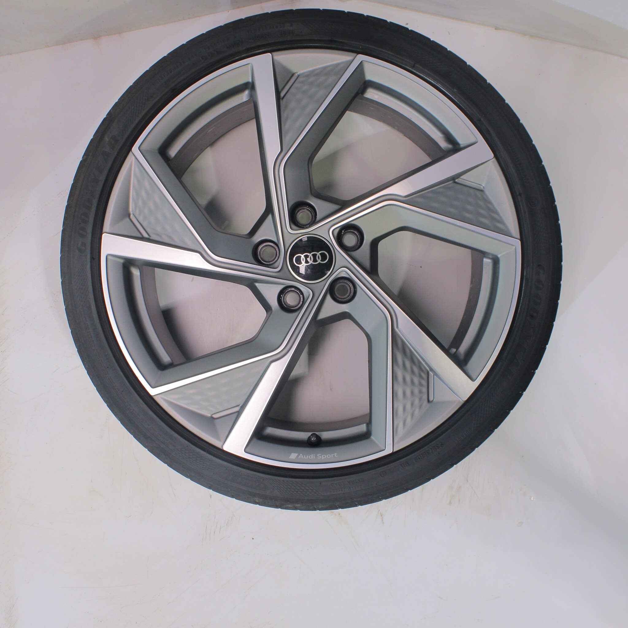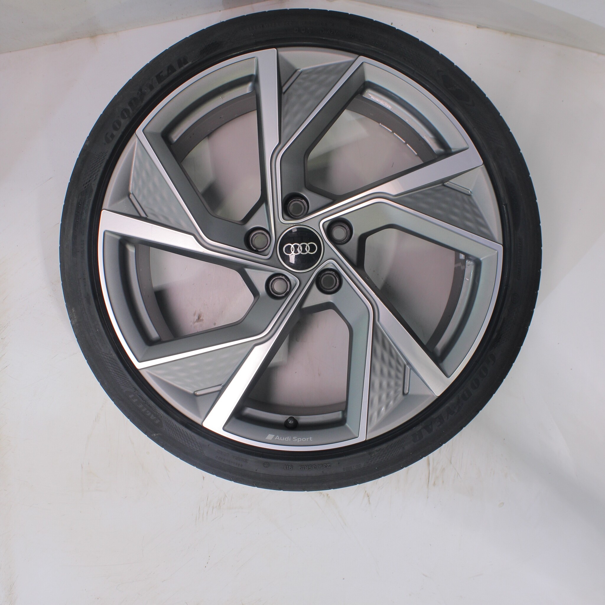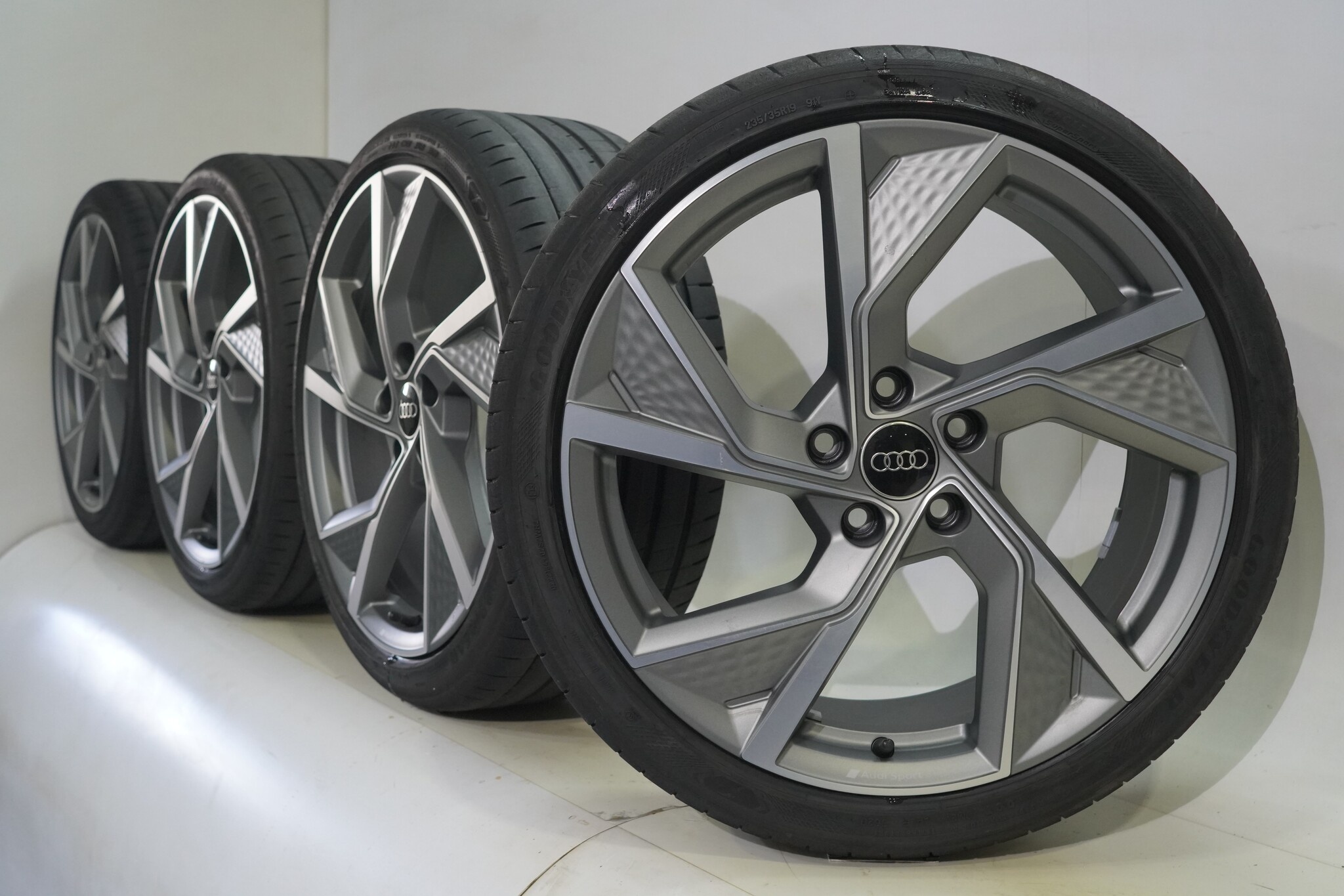 Originele wielset van Audi, 19 inch velgen met Goodyear Eagle F1 SuperSport Zomerbanden. Deze velgen zijn originele velgen van het merk Audi en geschikt voor: Audi A3 S3 8Y 8V.