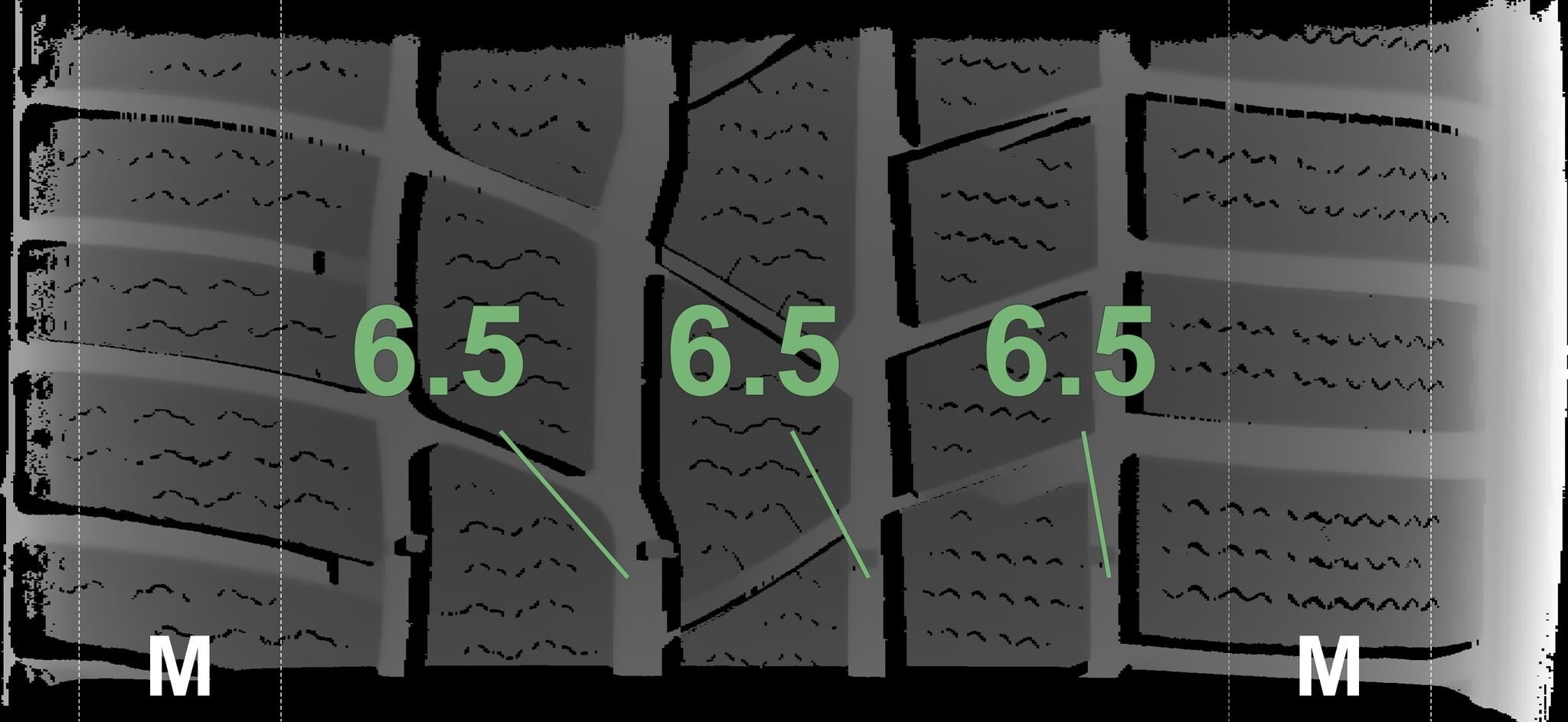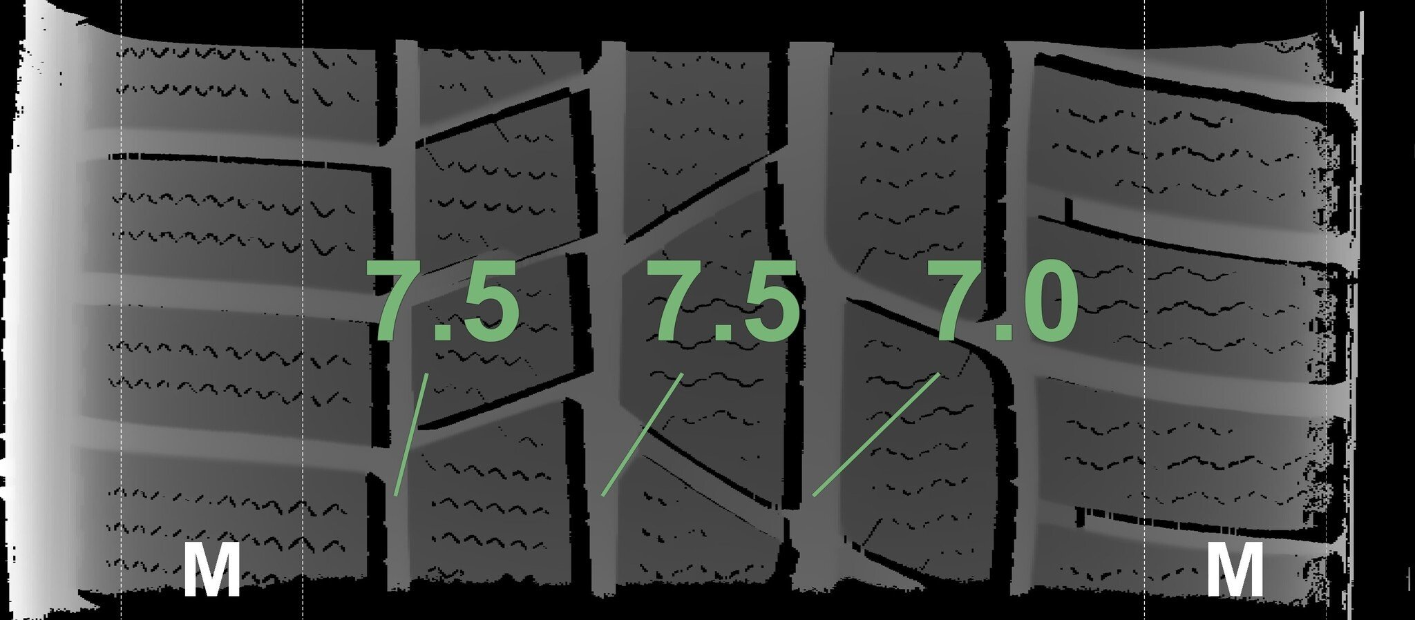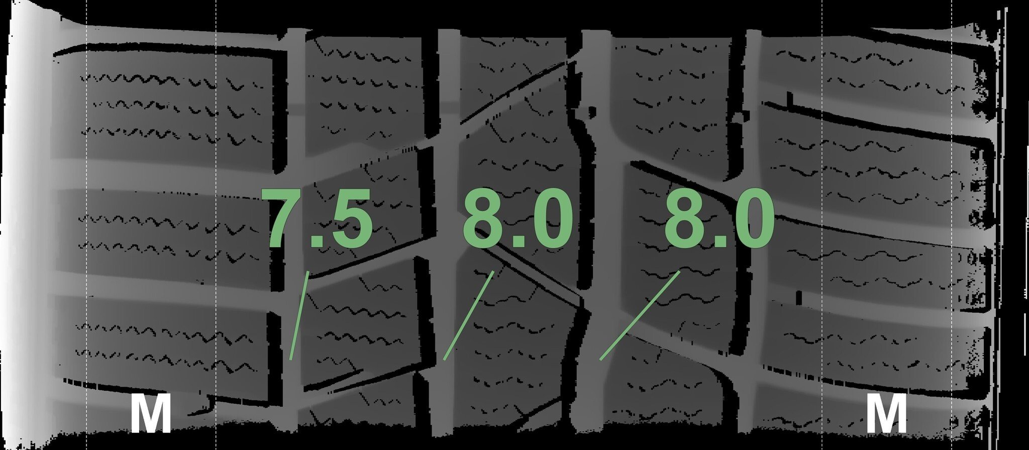 De gemeten profieldieptes en de details van de velgen zijn hierboven weergegeven.