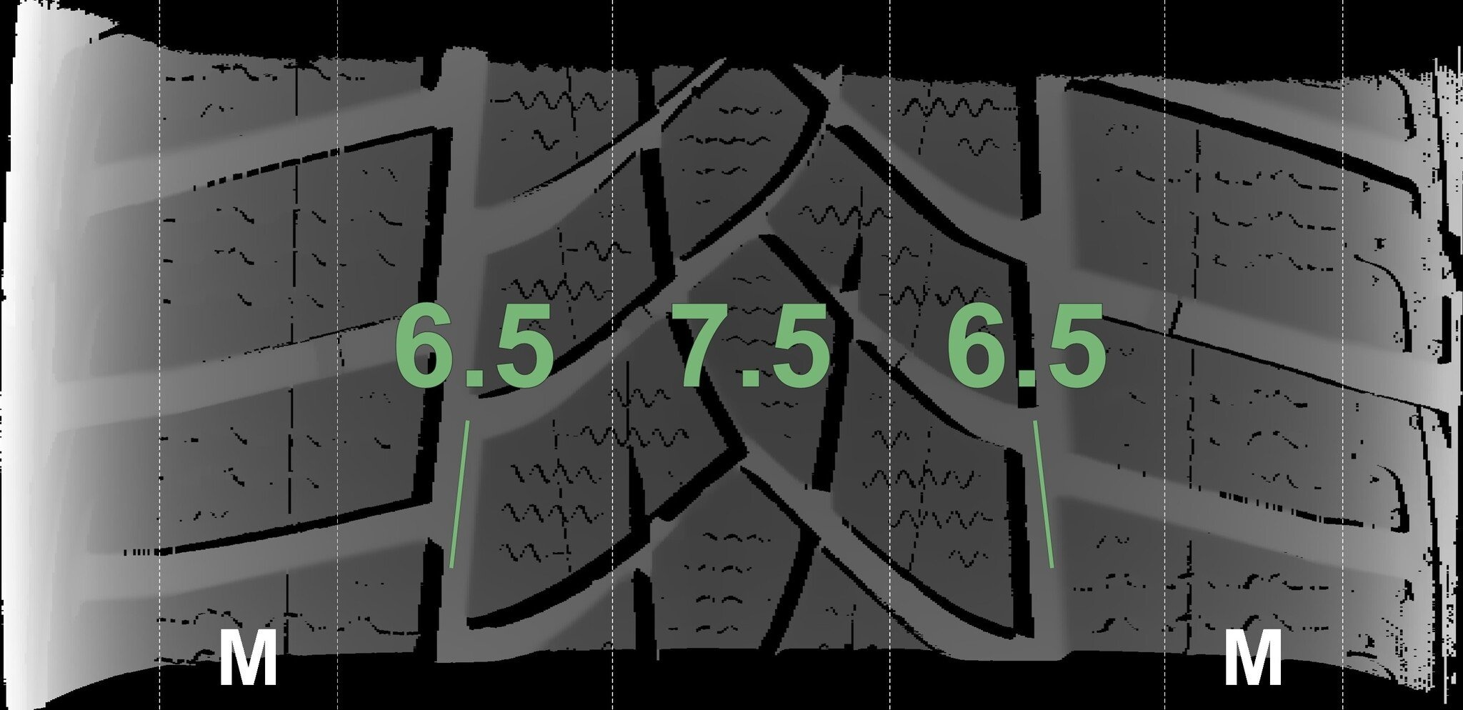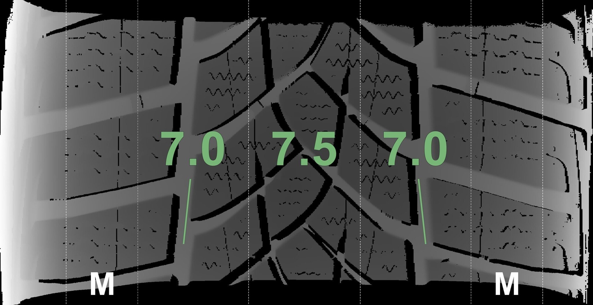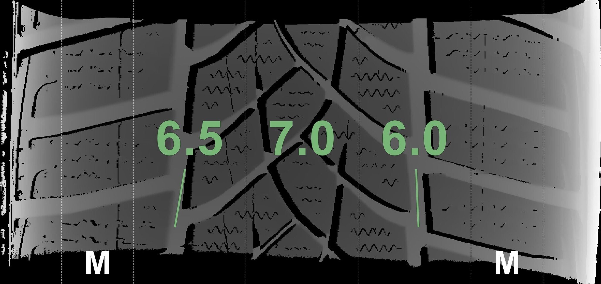 De gemeten profieldieptes en de details van de velgen zijn hierboven weergegeven.