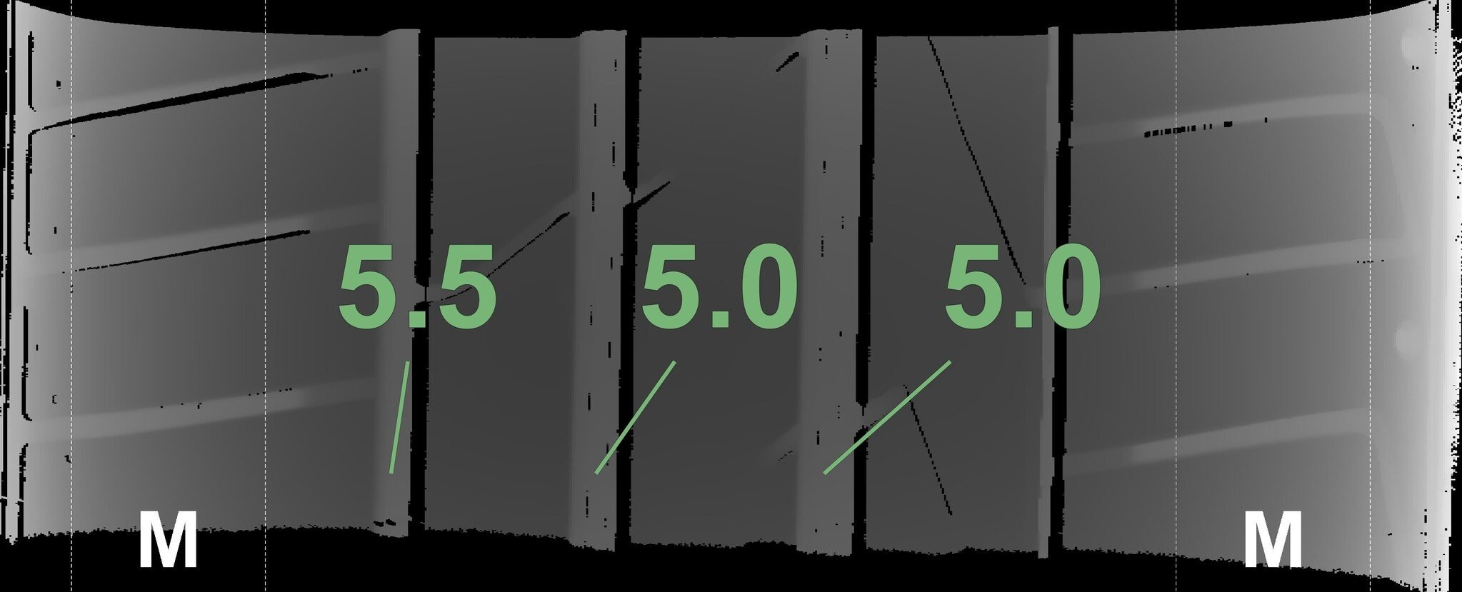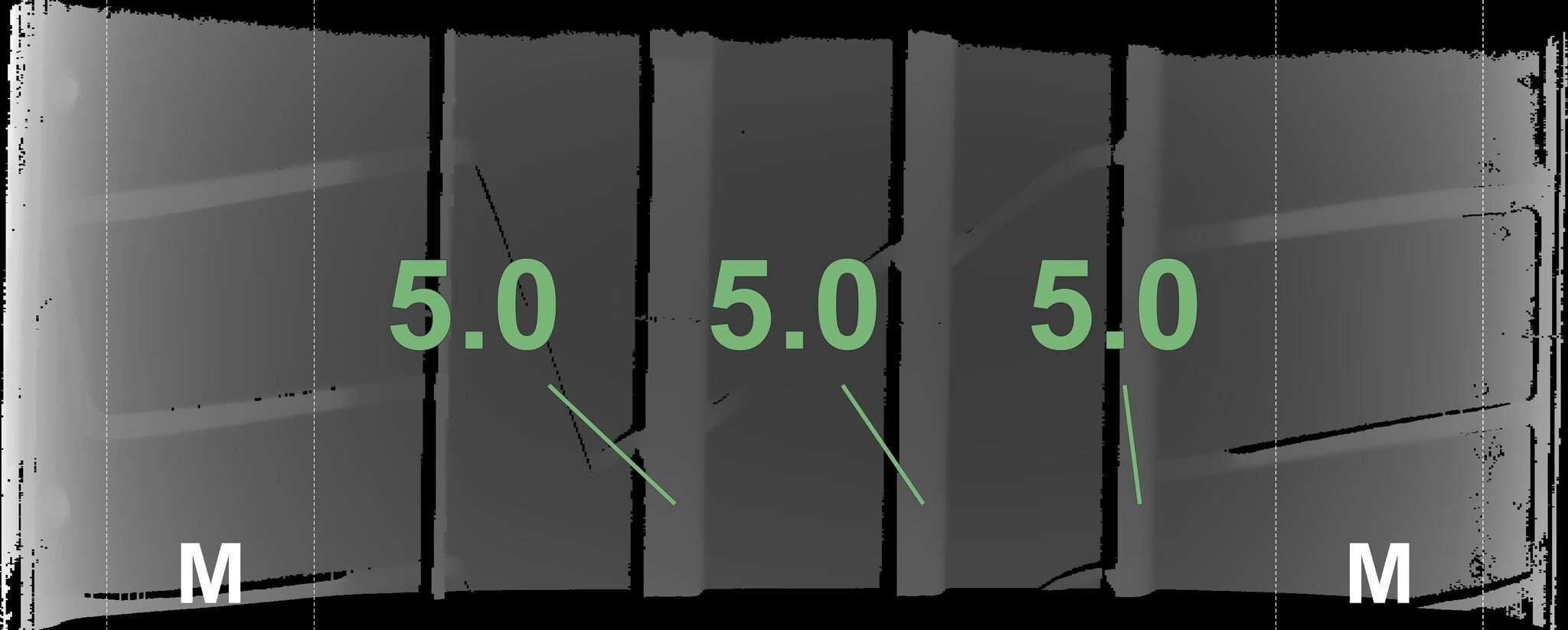 De gemeten profieldieptes en de details van de velgen zijn hierboven weergegeven.
