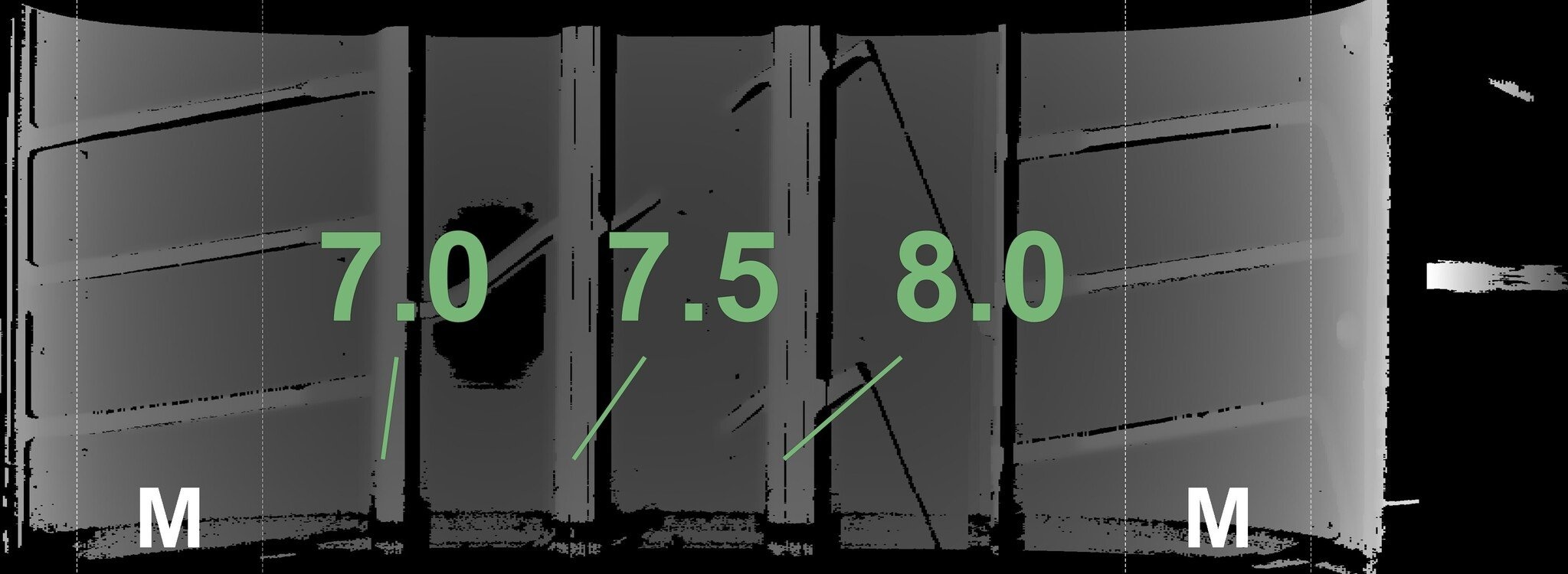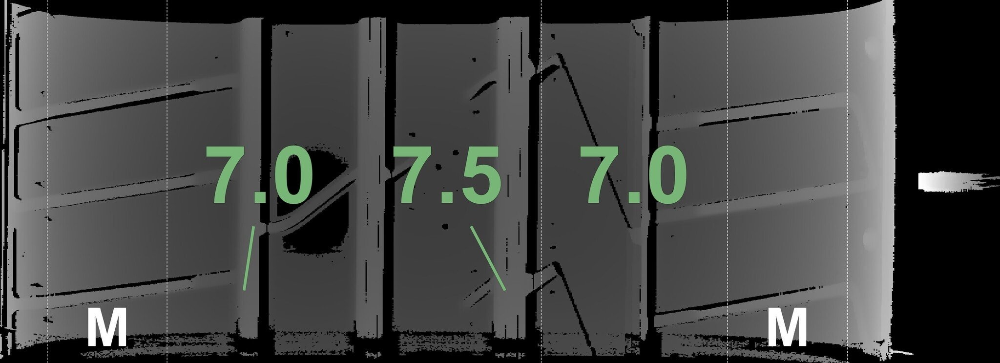 De gemeten profieldieptes en de details van de velgen zijn hierboven weergegeven.