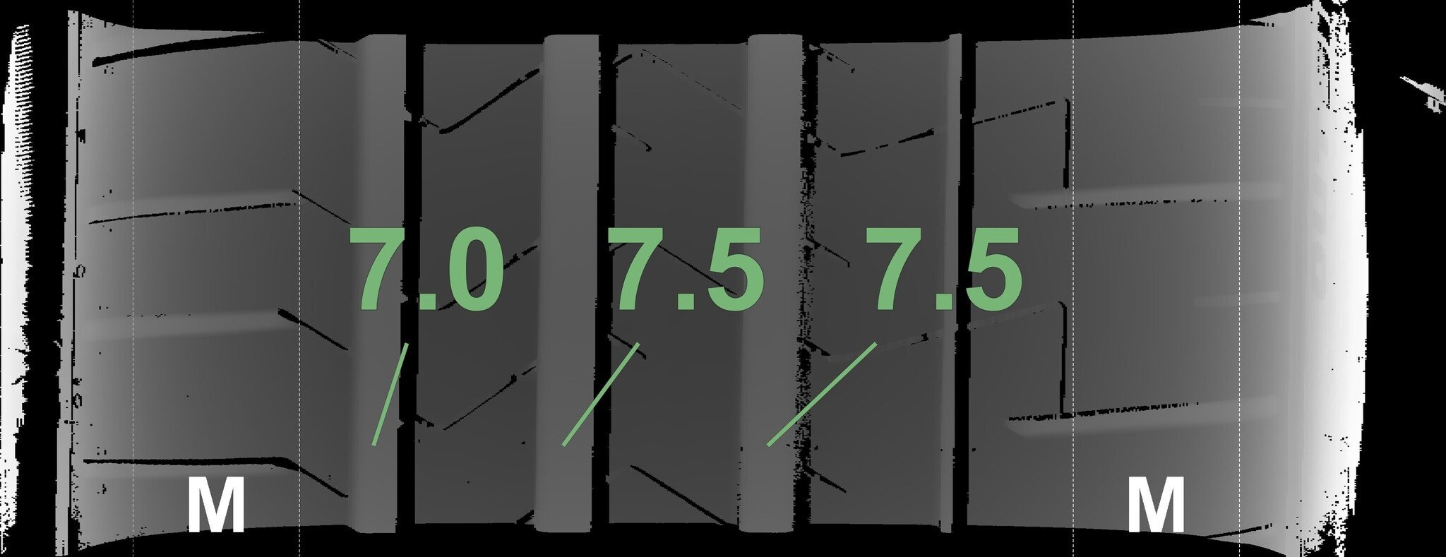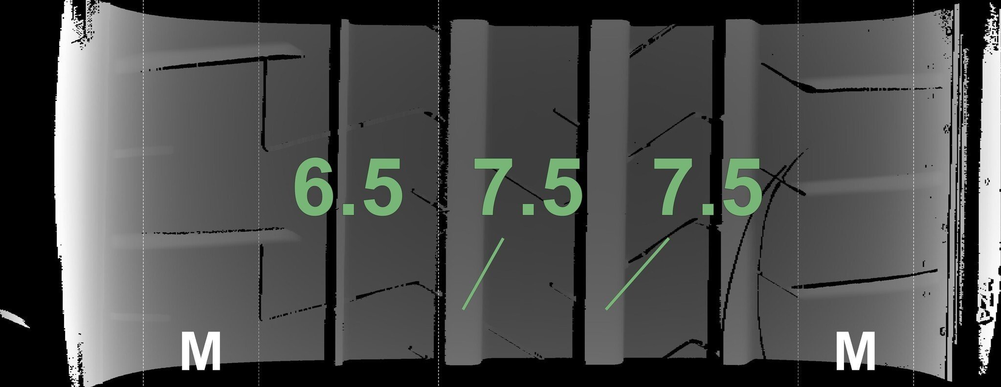 De gemeten profieldieptes en de details van de velgen zijn hierboven weergegeven.