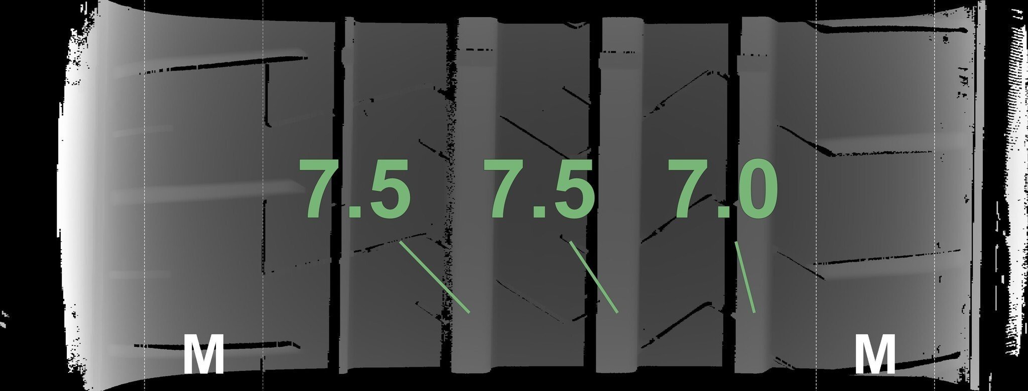 | Conditie | Profieldiepte | DOT | Rechts Voor | Nieuw | 7.3 mm | 1725 |