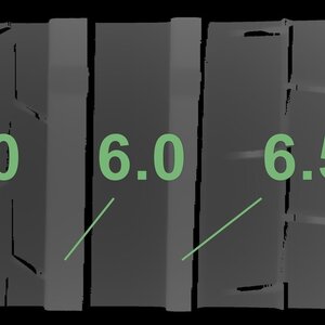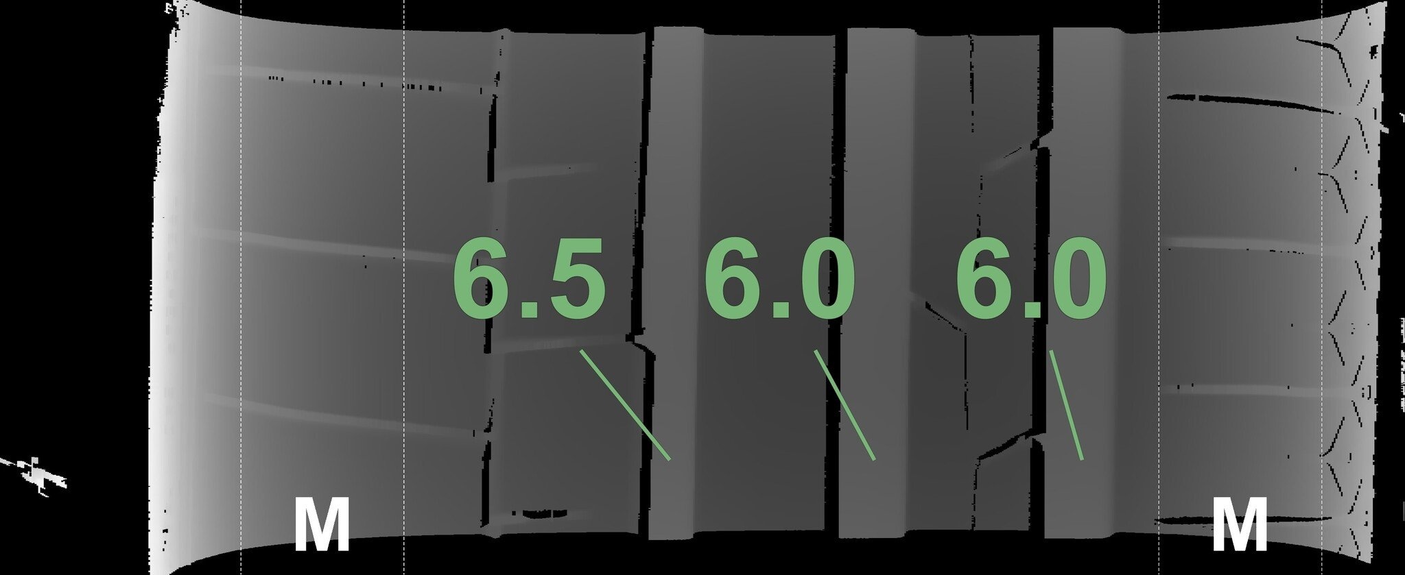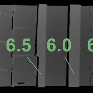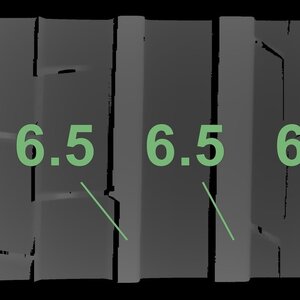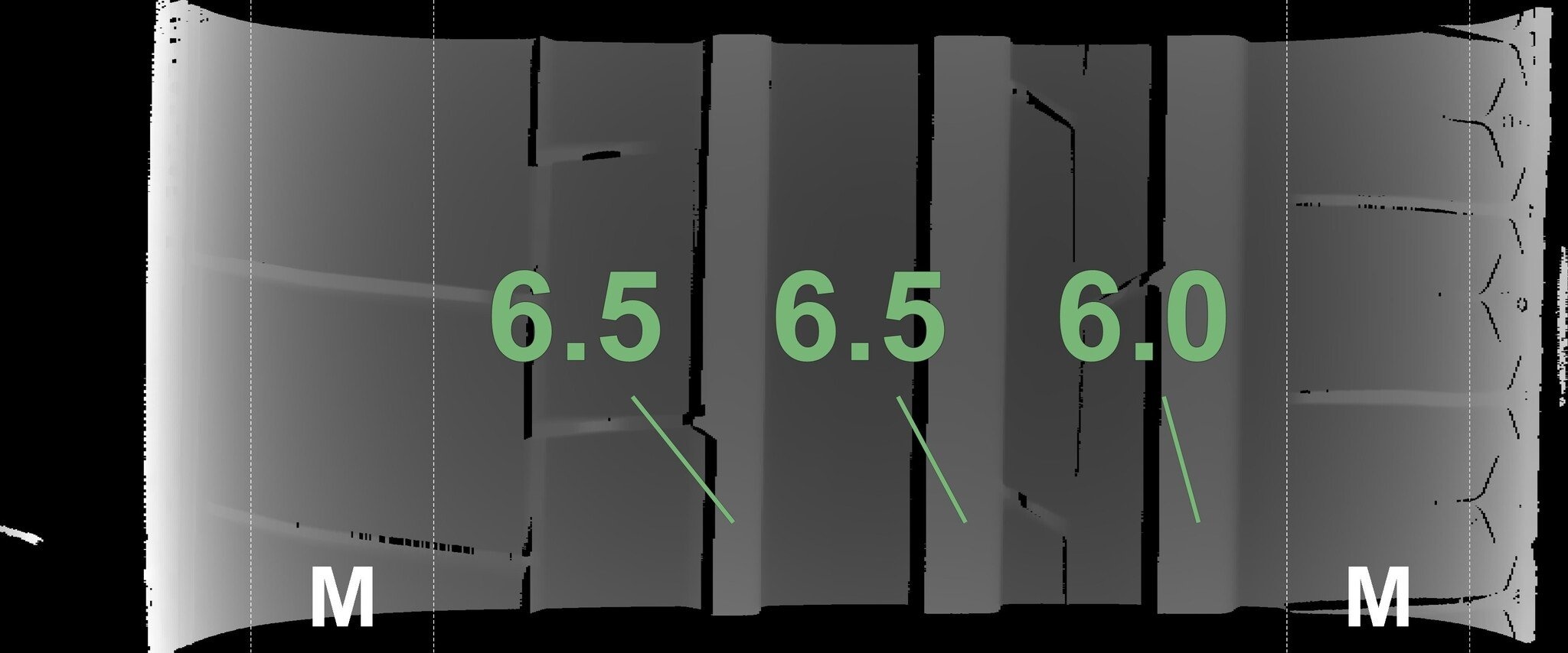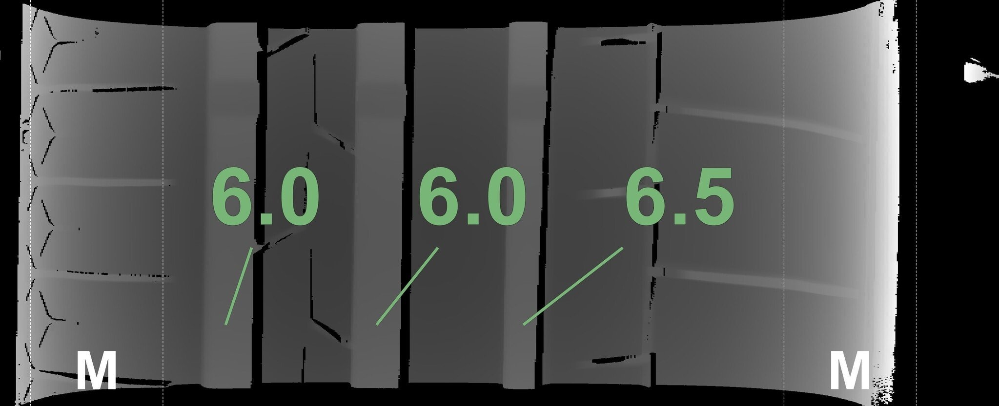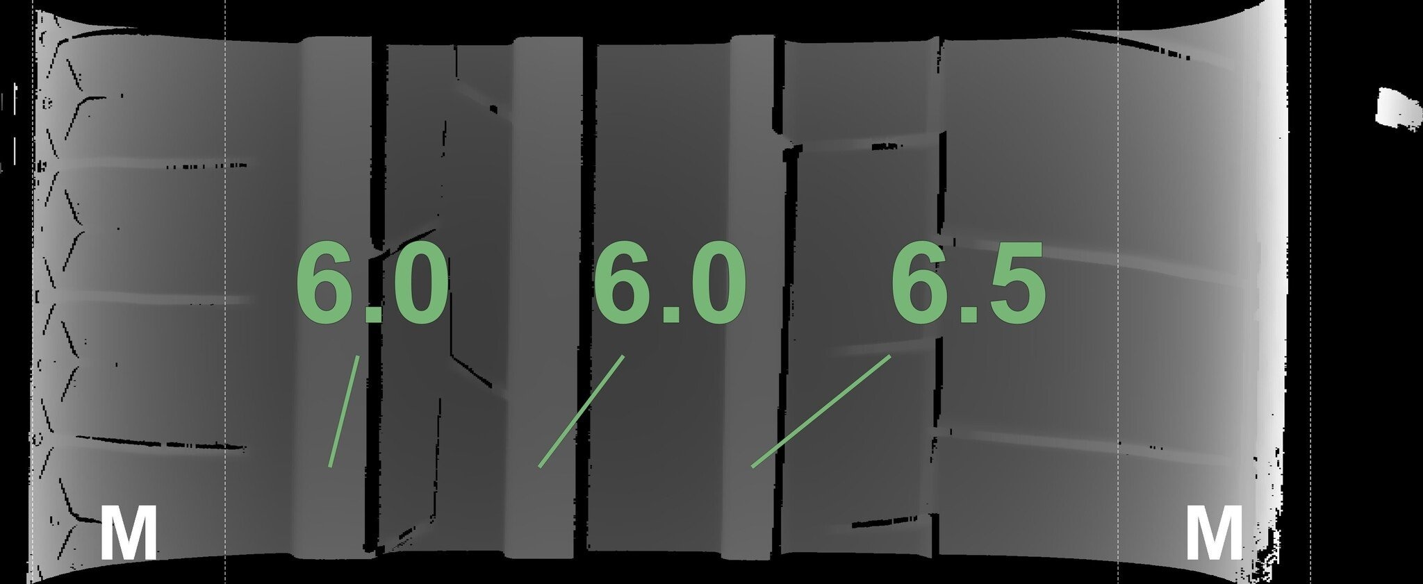De gemeten profieldieptes en de details van de velgen zijn hierboven weergegeven.