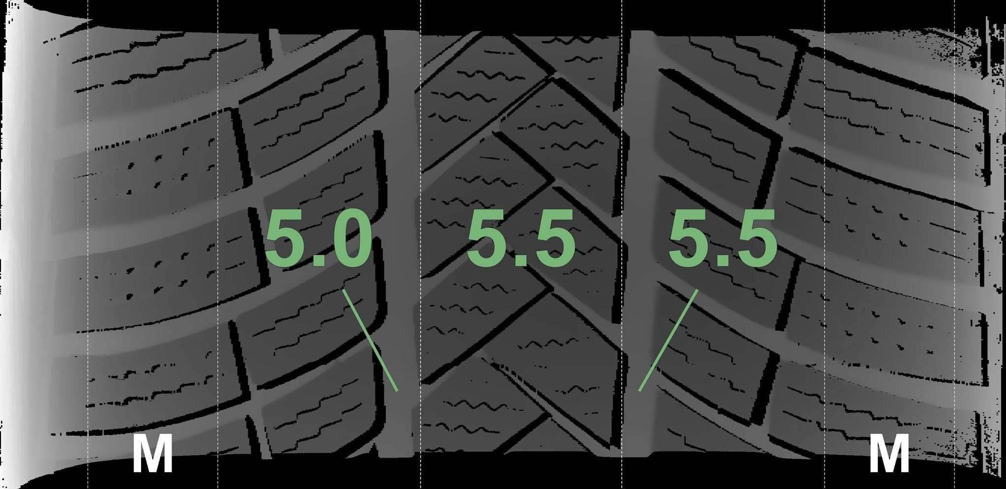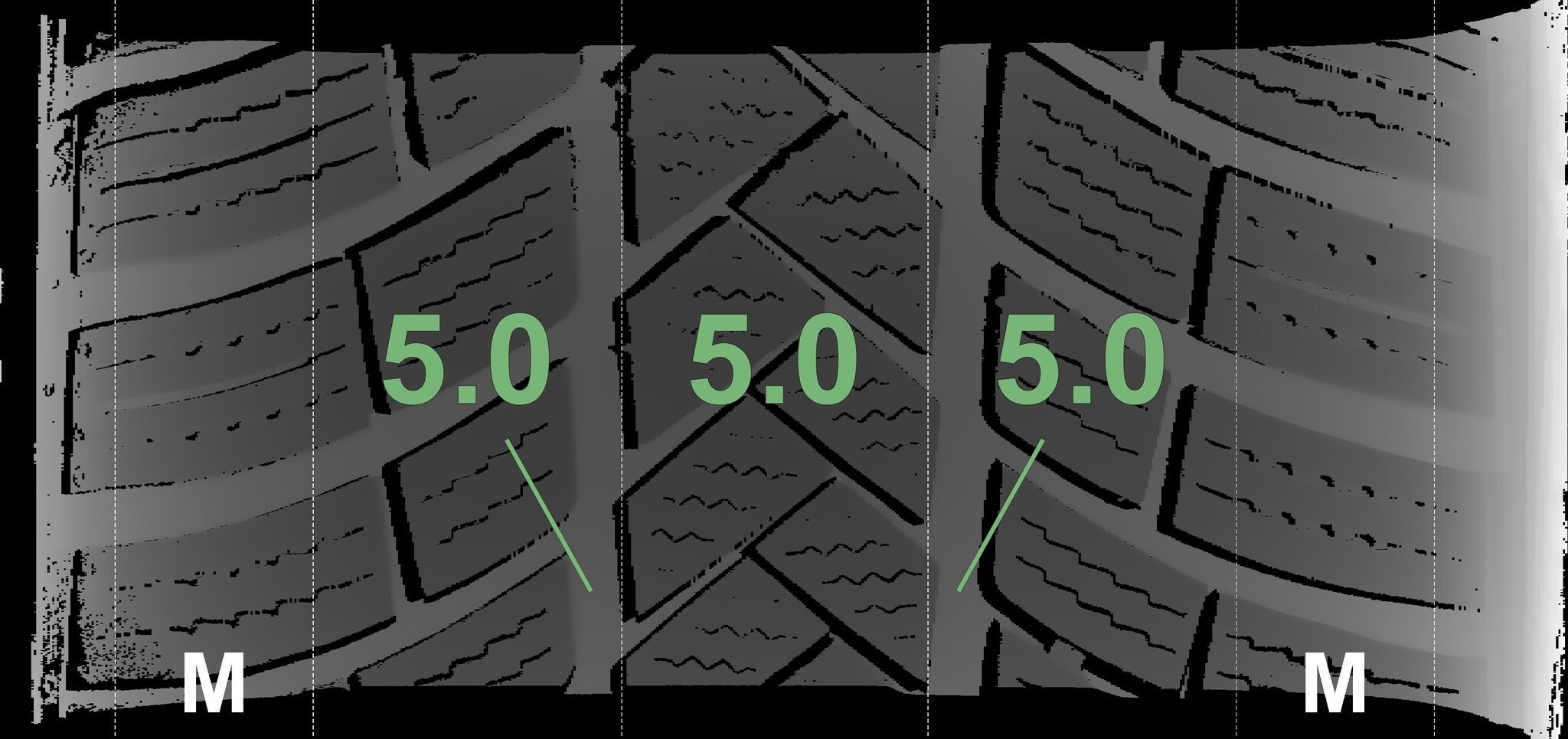 De gemeten profieldieptes en de details van de velgen zijn hierboven weergegeven.