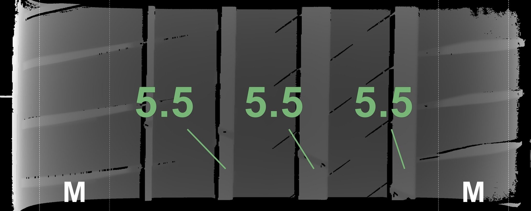 | Conditie | Profieldiepte | DOT | Rechts Voor | Gebruikt | 5.5 mm | 1825 |
