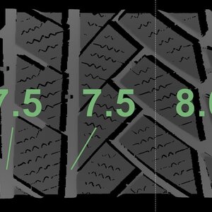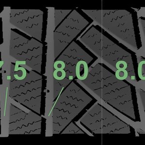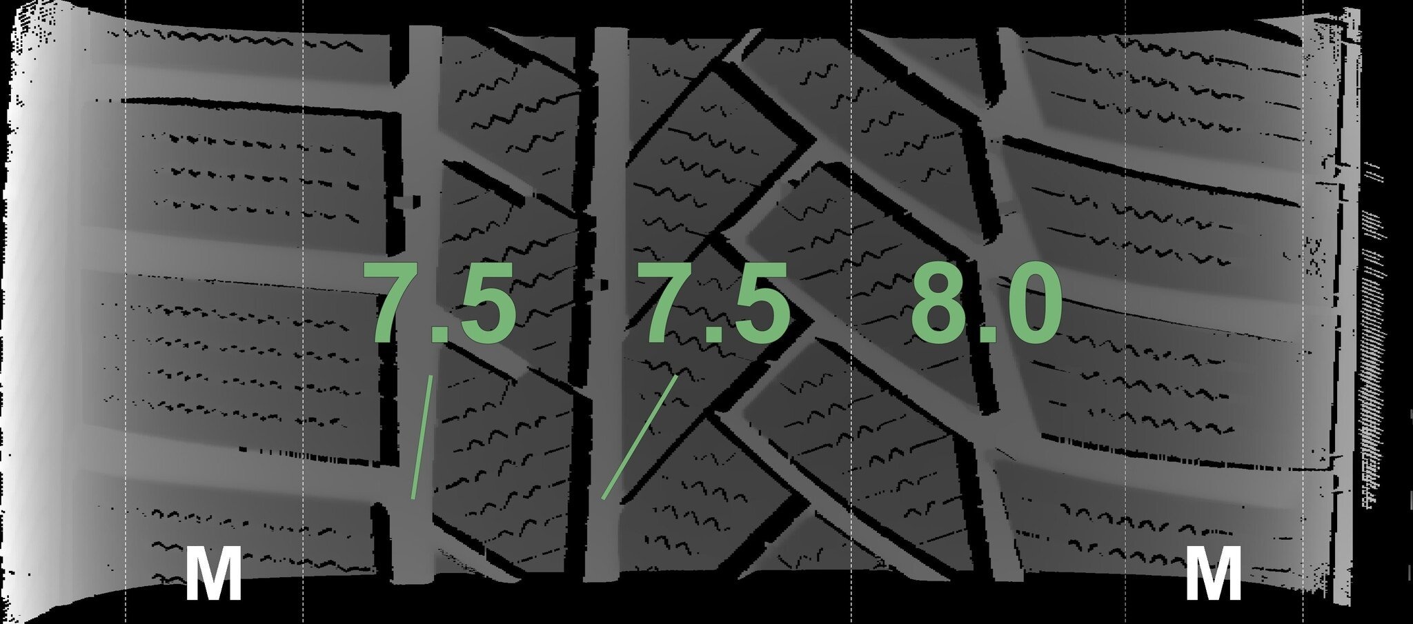 De gemeten profieldieptes en de details van de velgen zijn hierboven weergegeven.