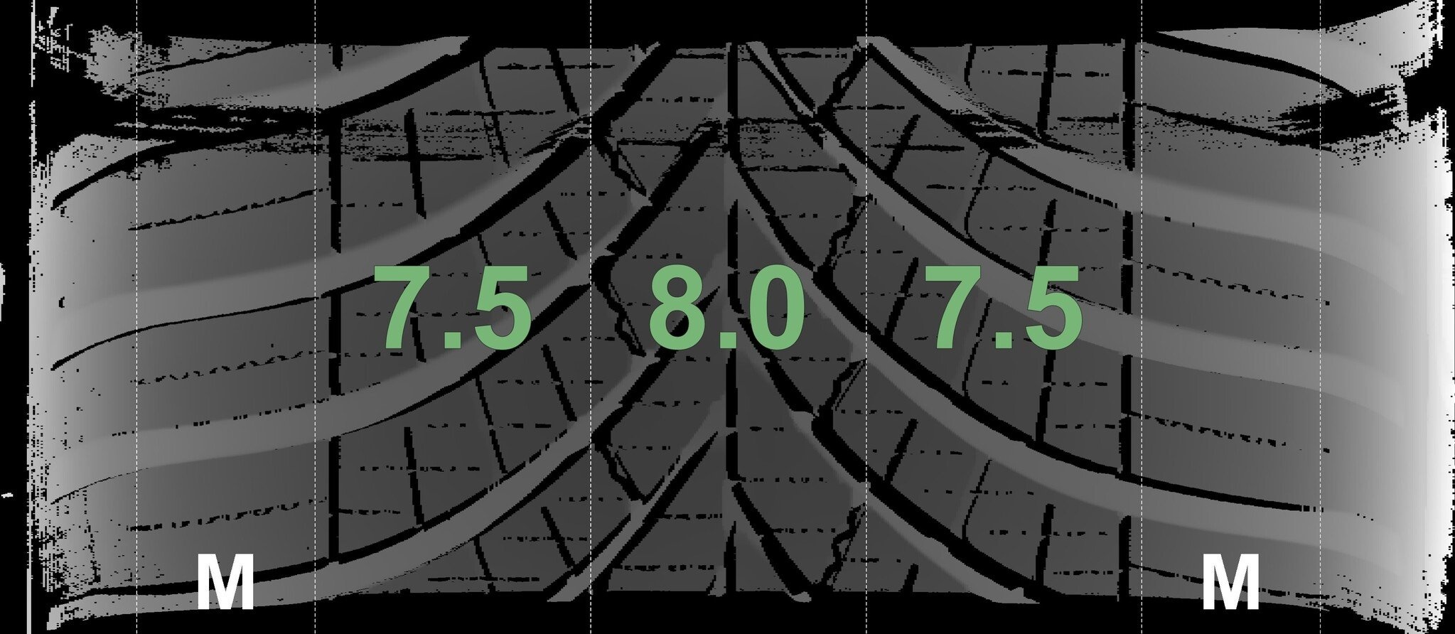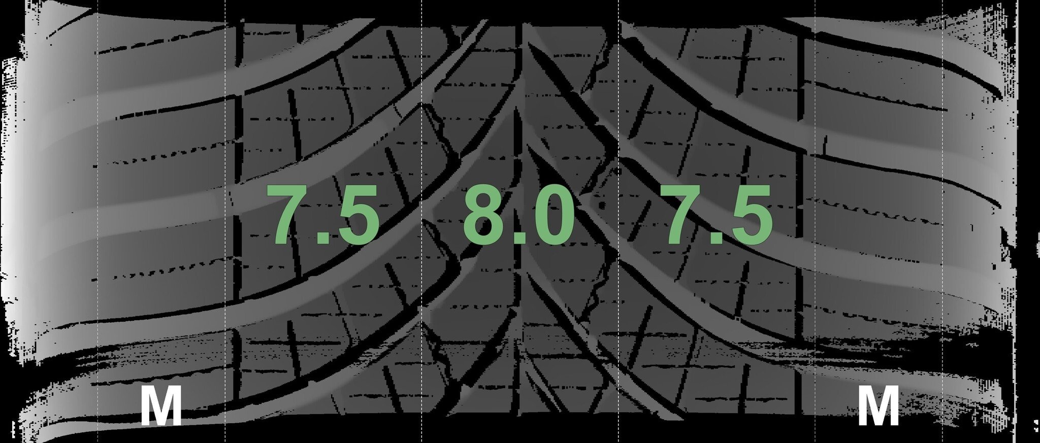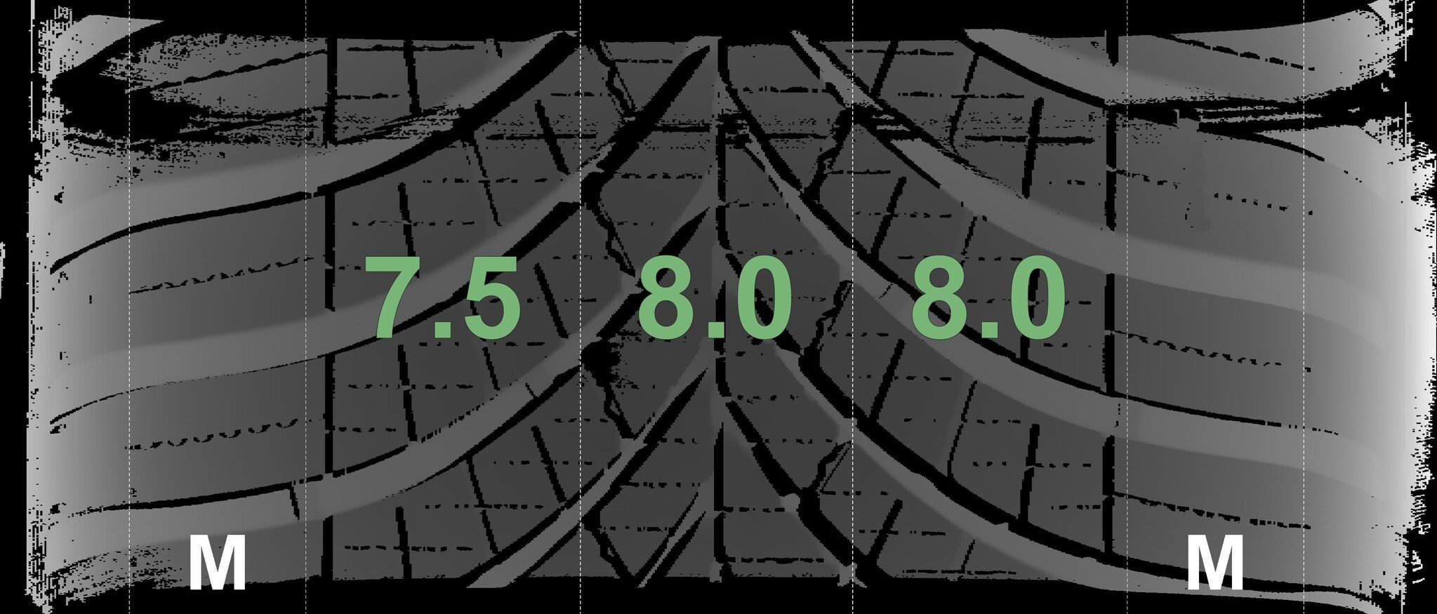 | Conditie | Profieldiepte | DOT | Rechts Achter | Demo nopjes nog zichtbaar | 7.5 mm | 2022 |