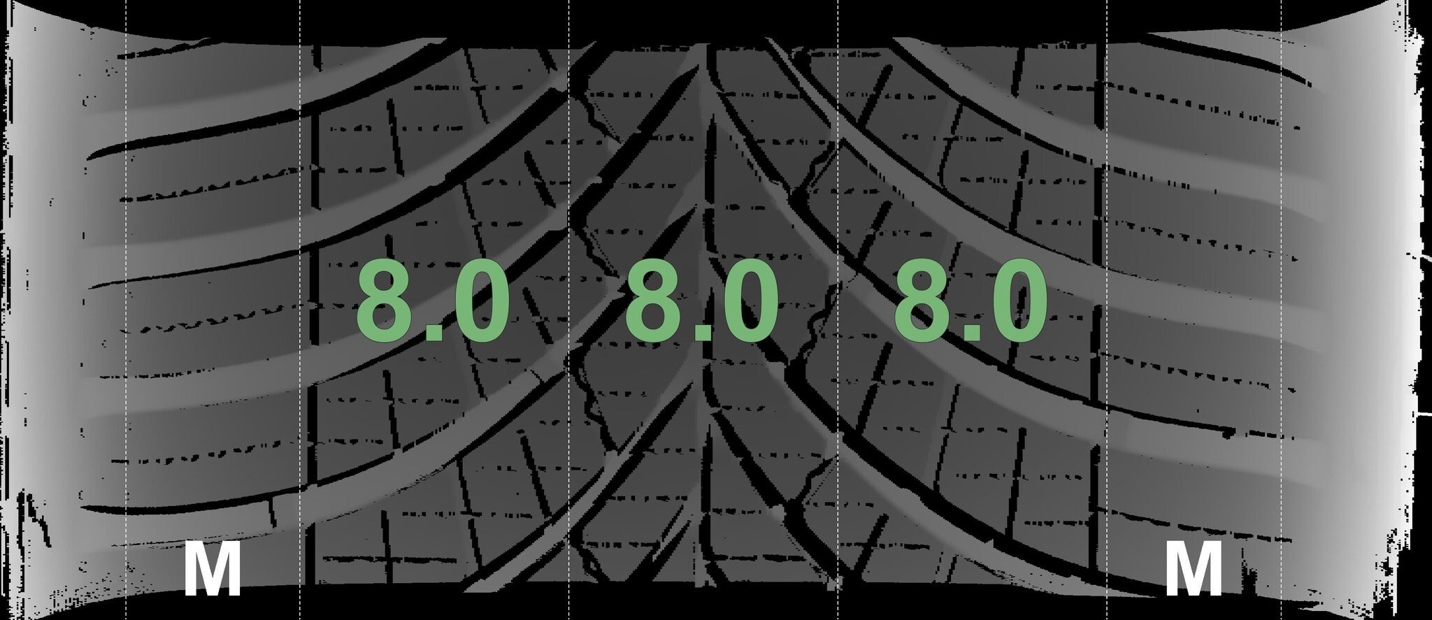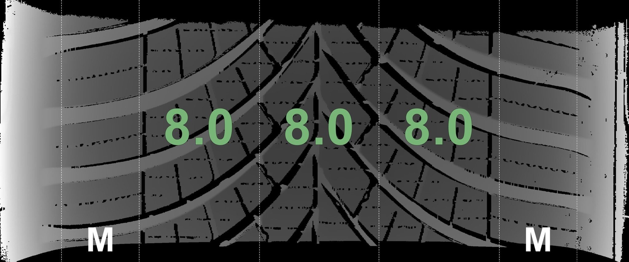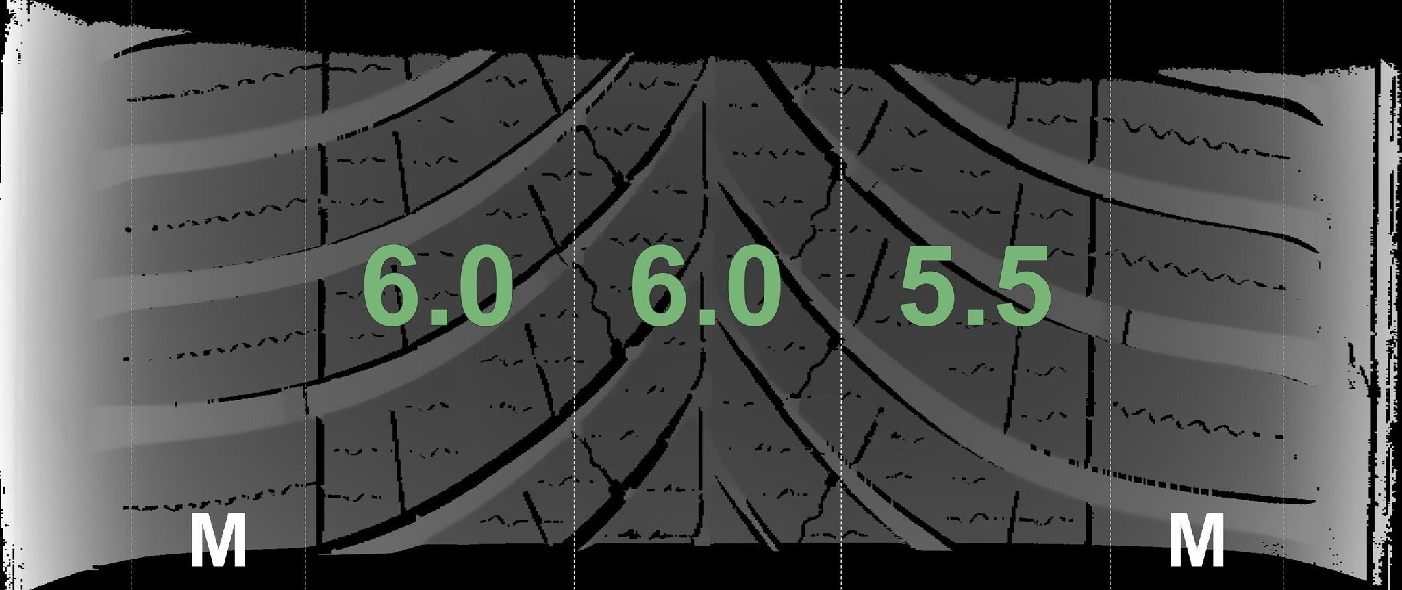 De gemeten profieldieptes en de details van de velgen zijn hierboven weergegeven.