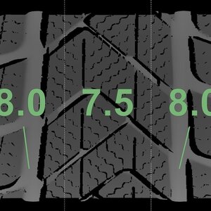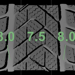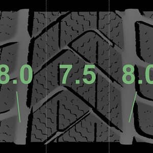 De gemeten profieldieptes en de details van de velgen zijn hierboven weergegeven.