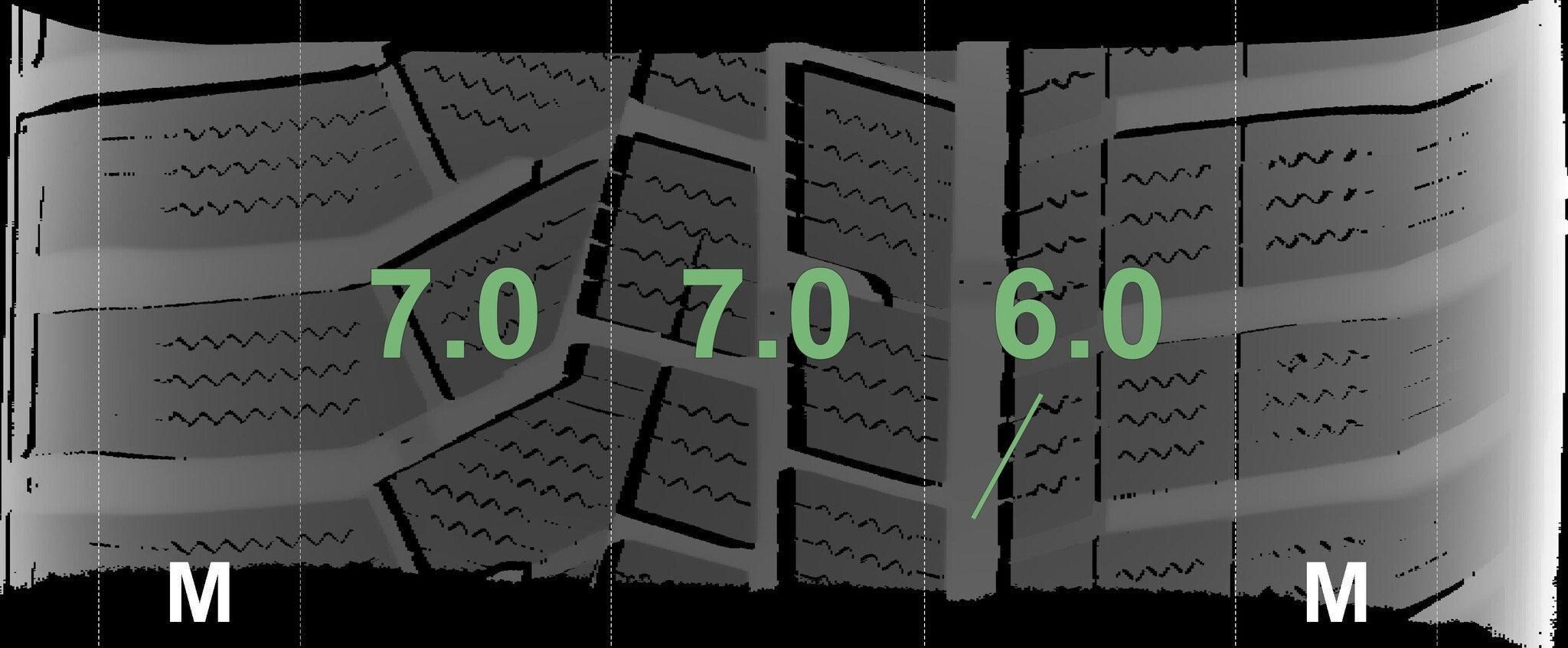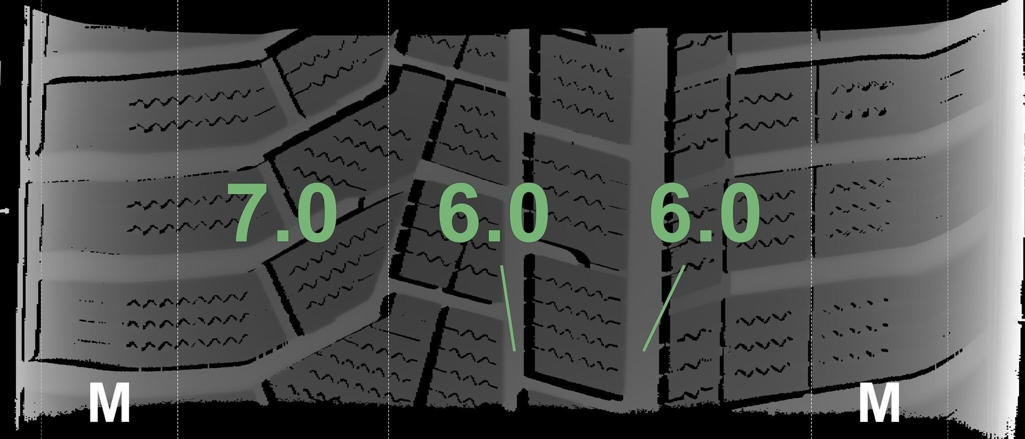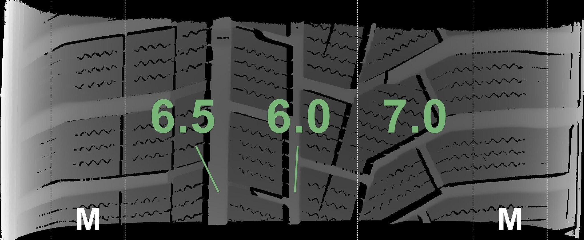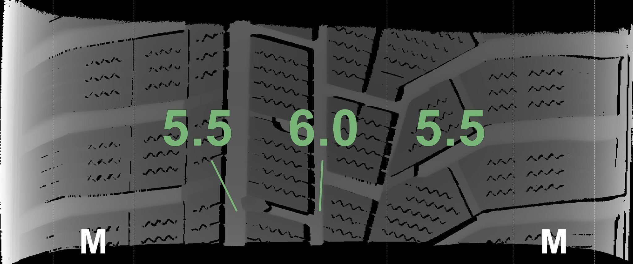 De gemeten profieldieptes en de details van de velgen zijn hierboven weergegeven.