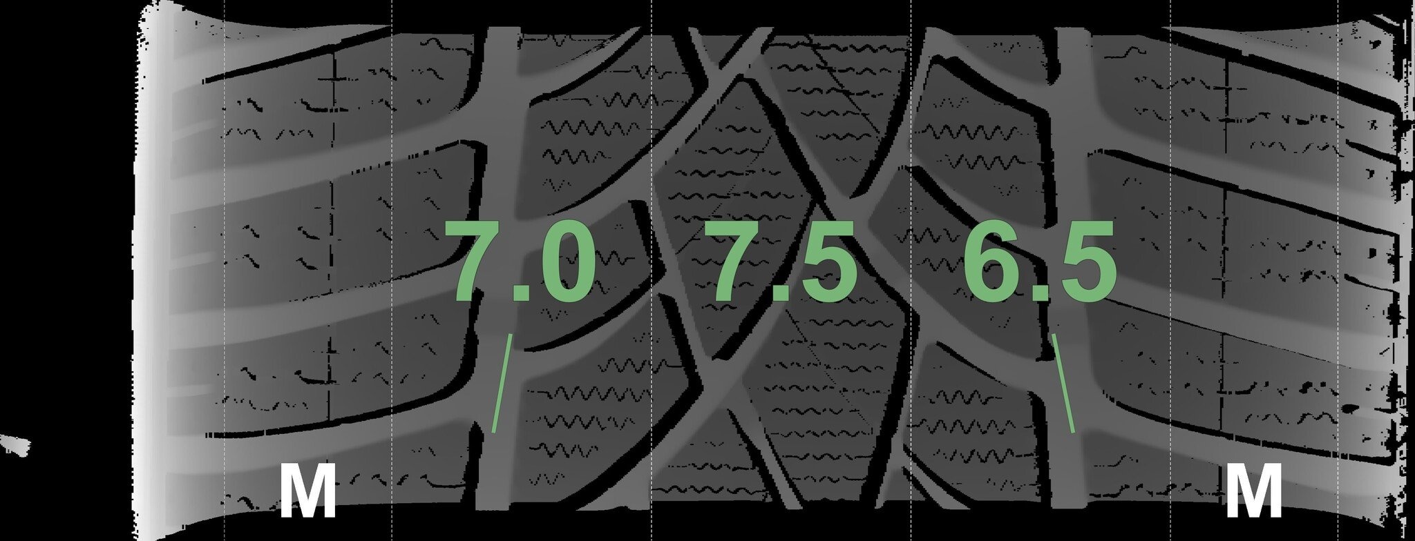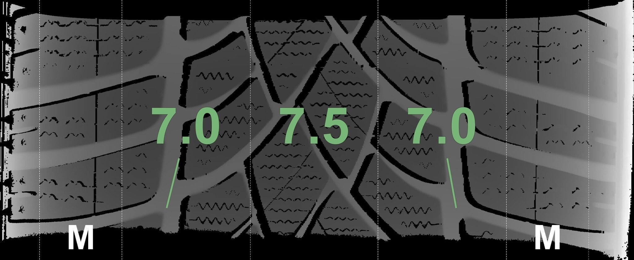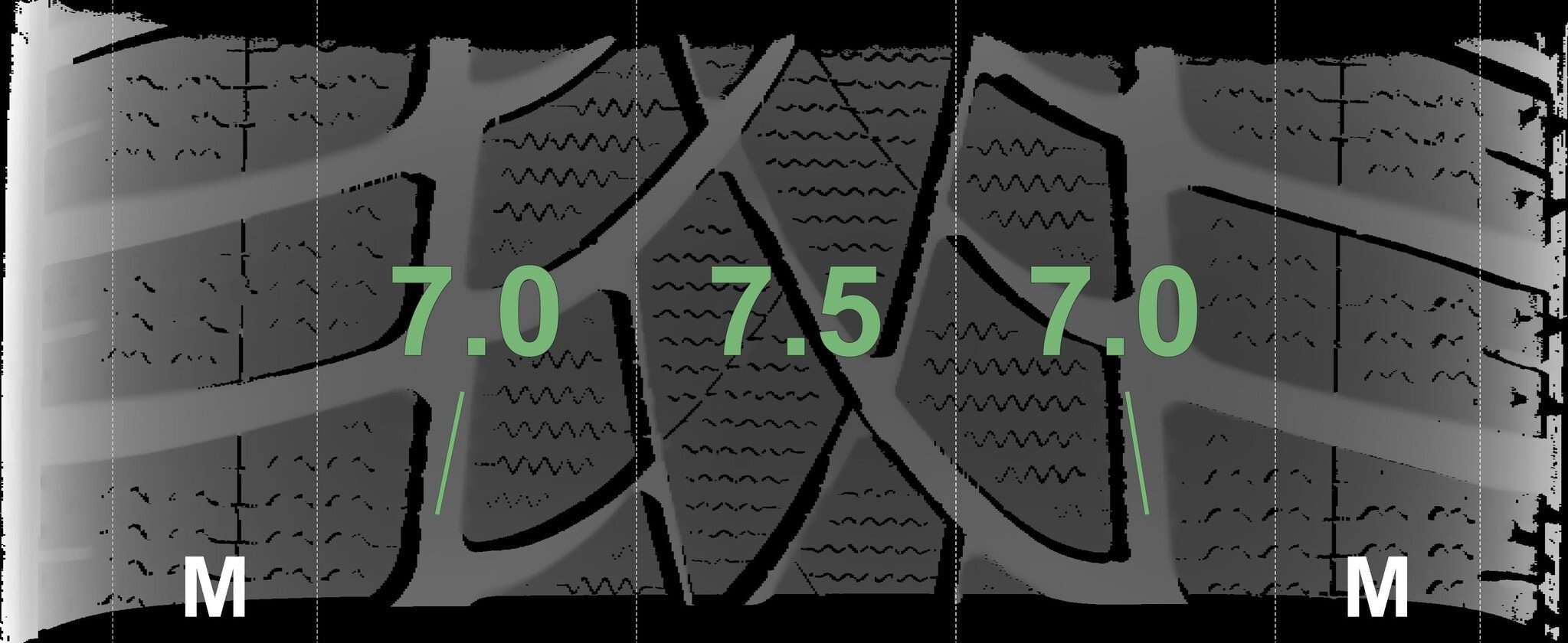 De gemeten profieldieptes en de details van de velgen zijn hierboven weergegeven.