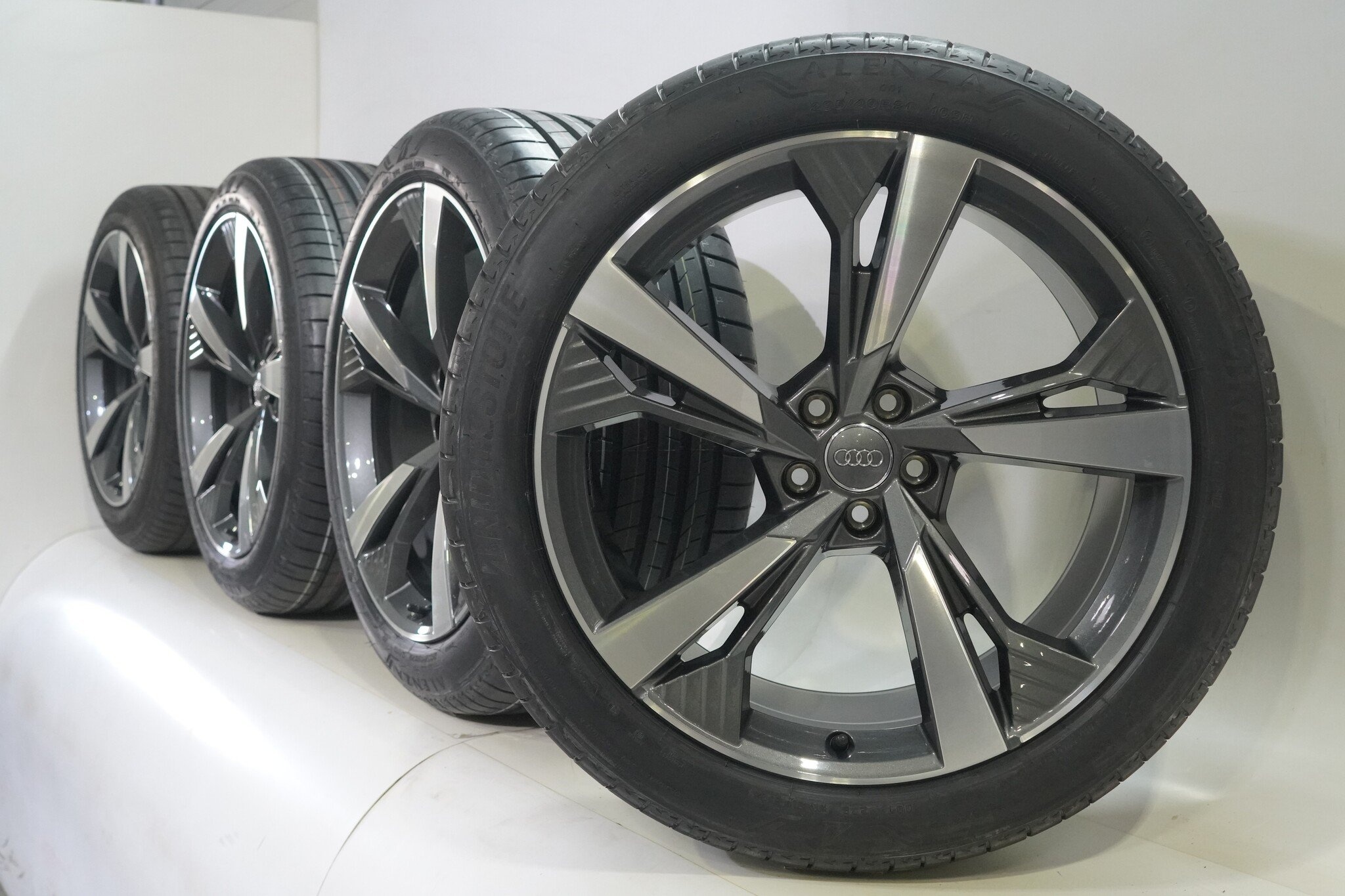 Originele wielset van Audi, 21 inch velgen met Bridgestone Alenza 001 Zomerbanden. Deze velgen zijn originele velgen van het merk Audi en geschikt voor: Audi e-tron GE Q8 e-tron.