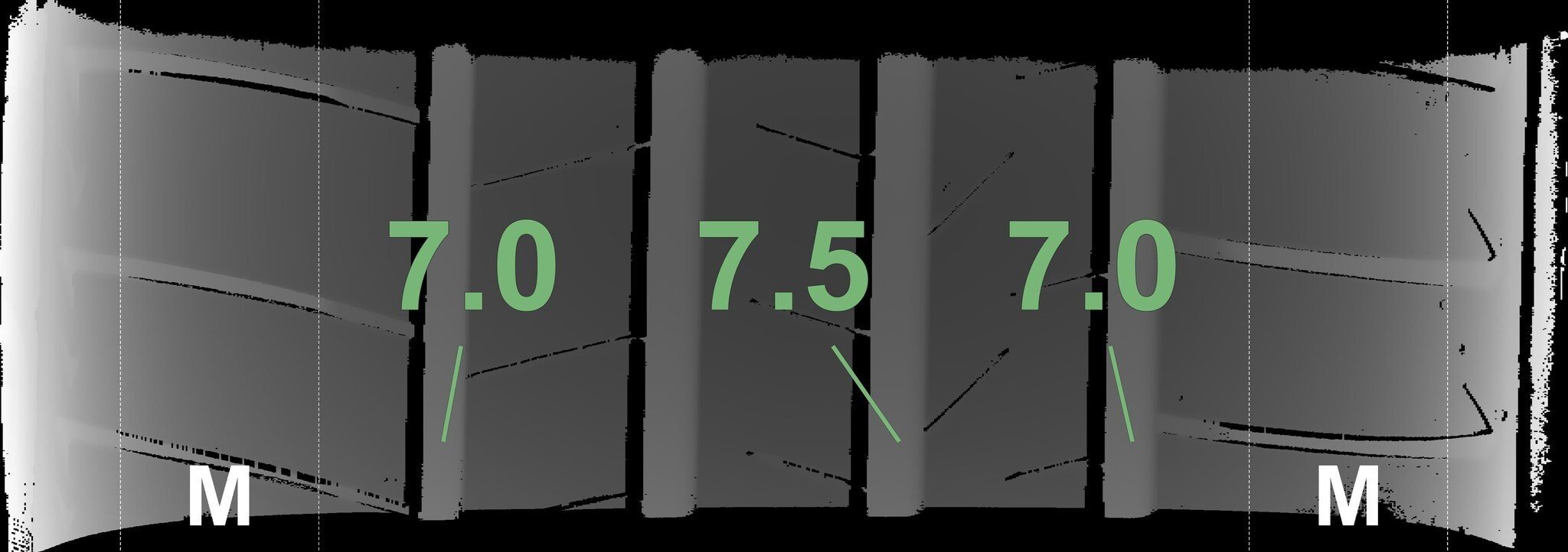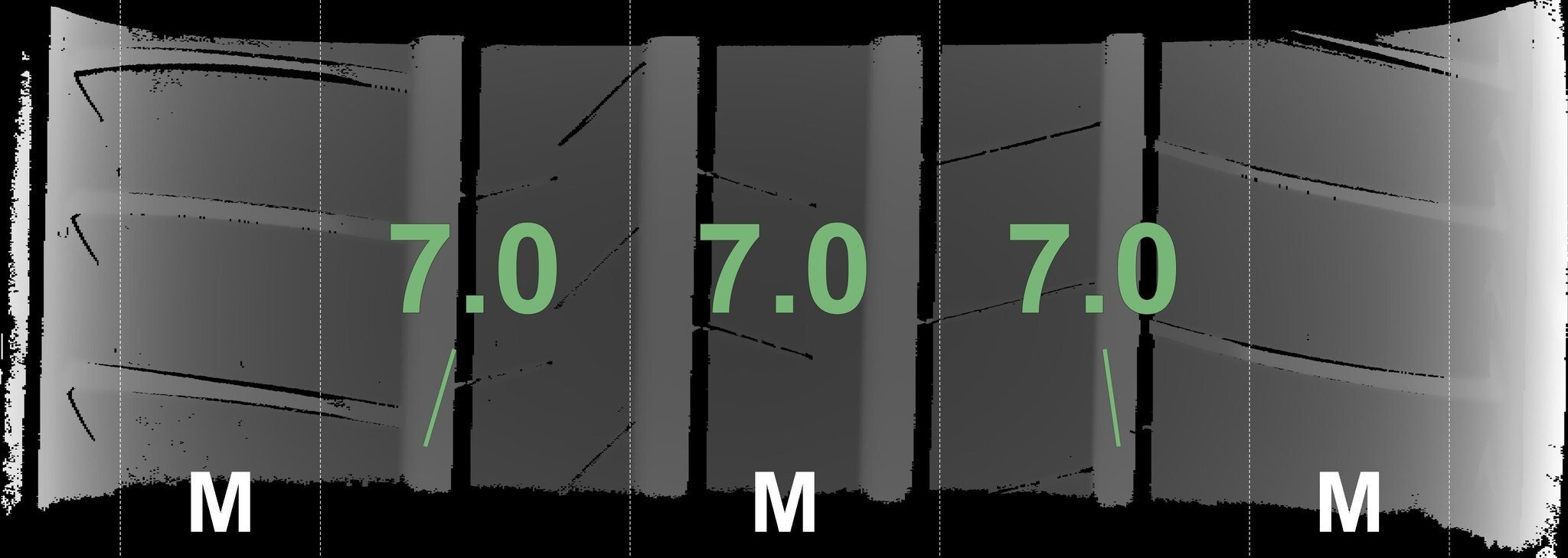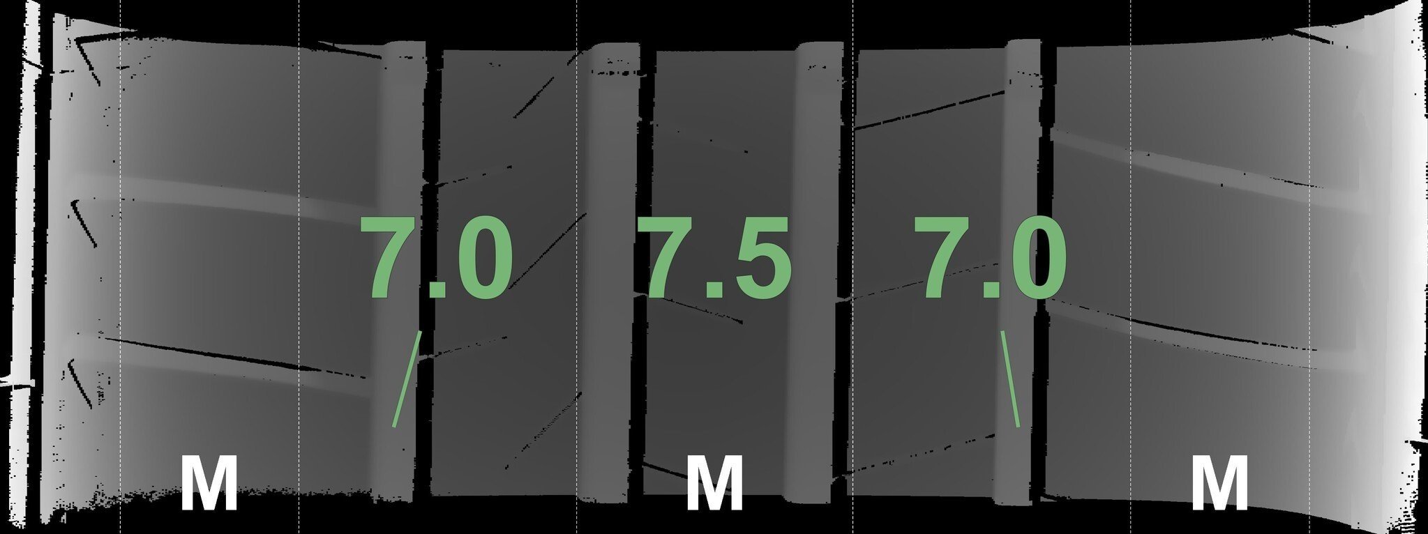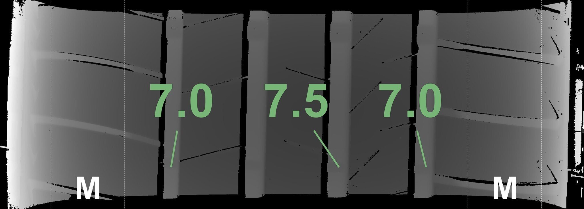 De gemeten profieldieptes en de details van de velgen zijn hierboven weergegeven.