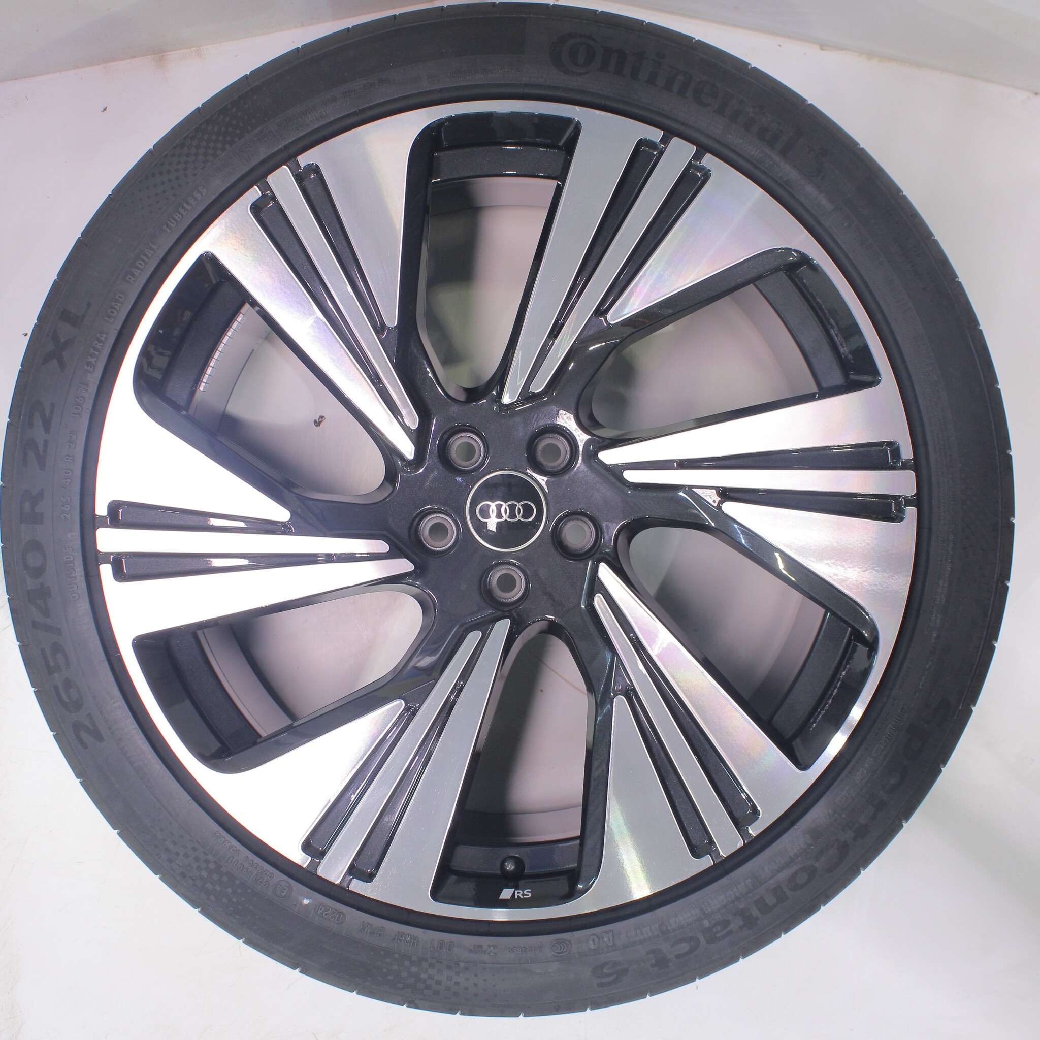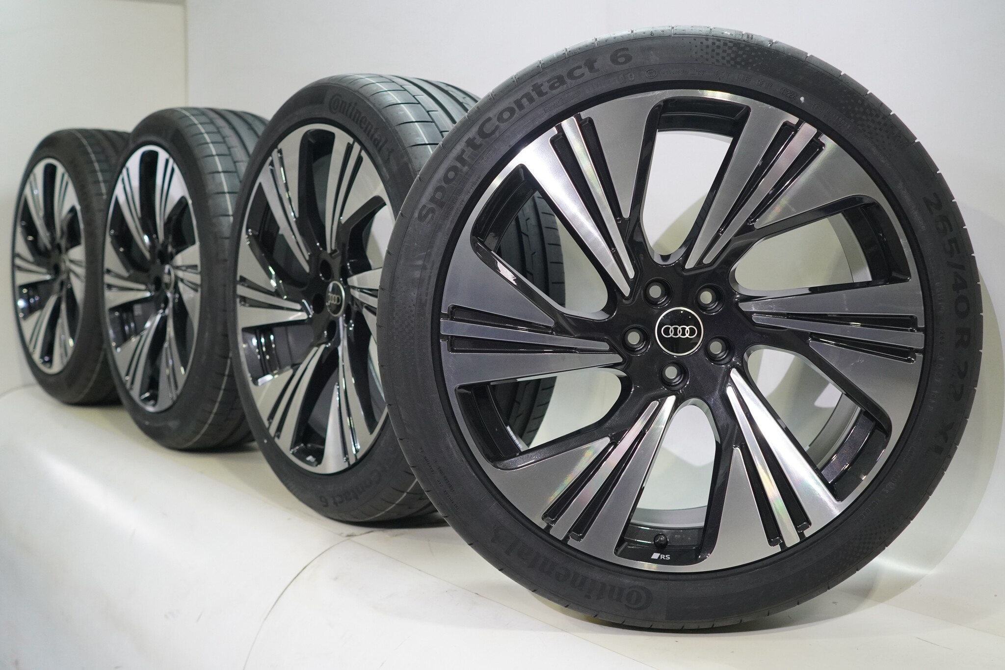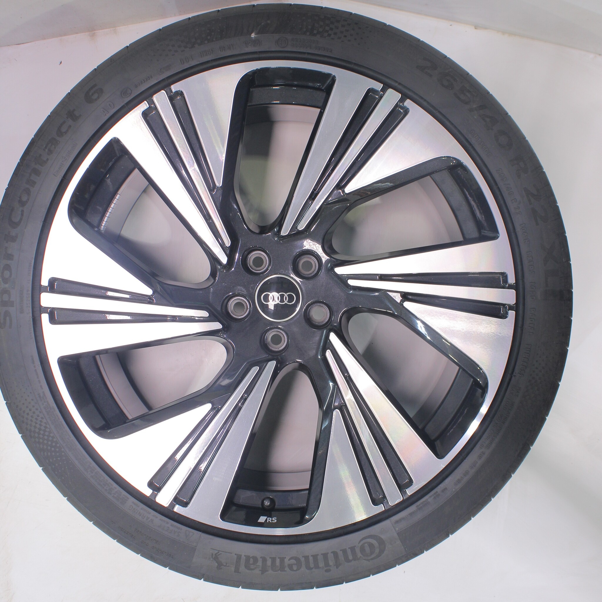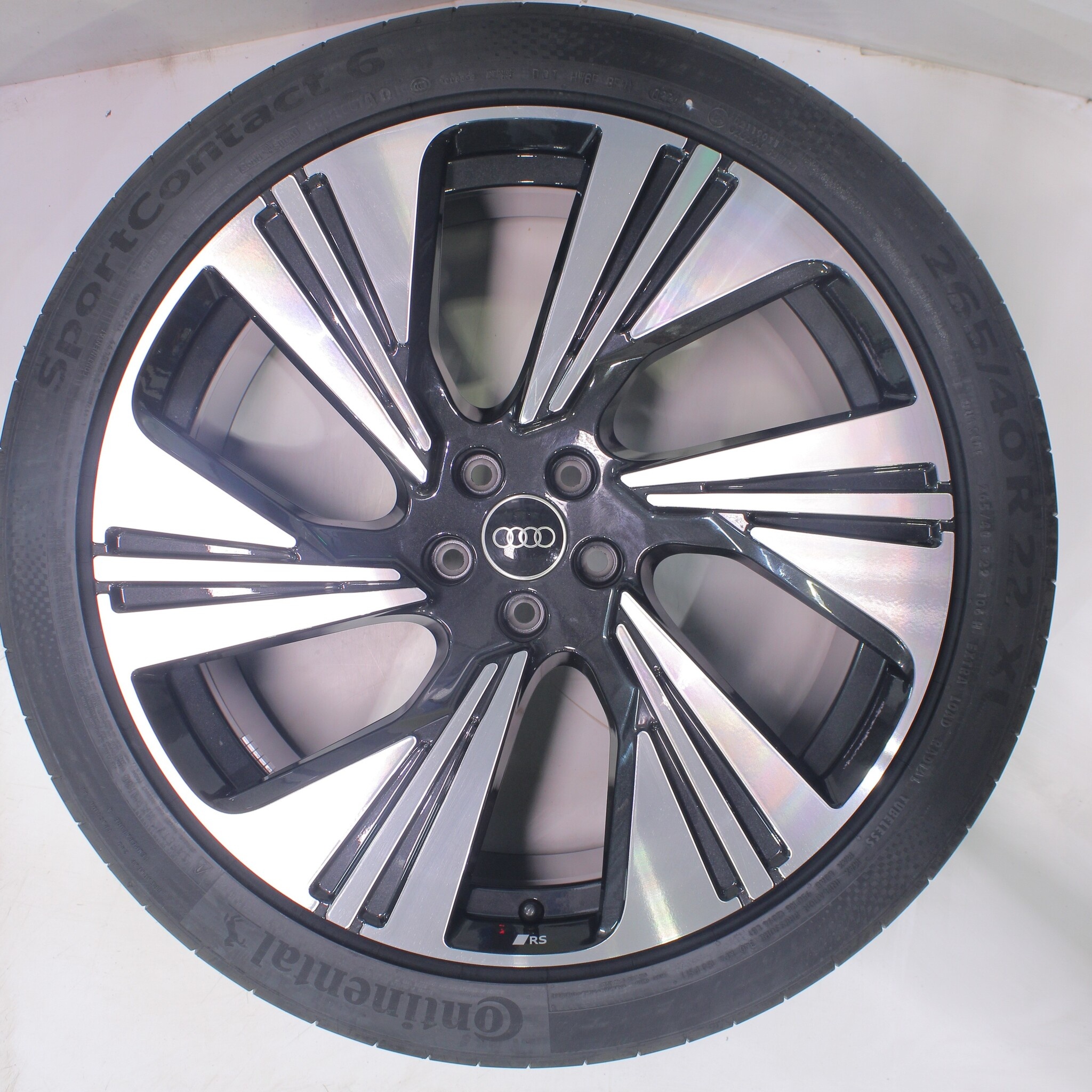 Originele wielset van Audi, 22 inch velgen met Continental SPORT CONTACT 6 Zomerbanden. Deze velgen zijn originele velgen van het merk Audi en geschikt voor: Audi e-tron GE Q8 e-tron.