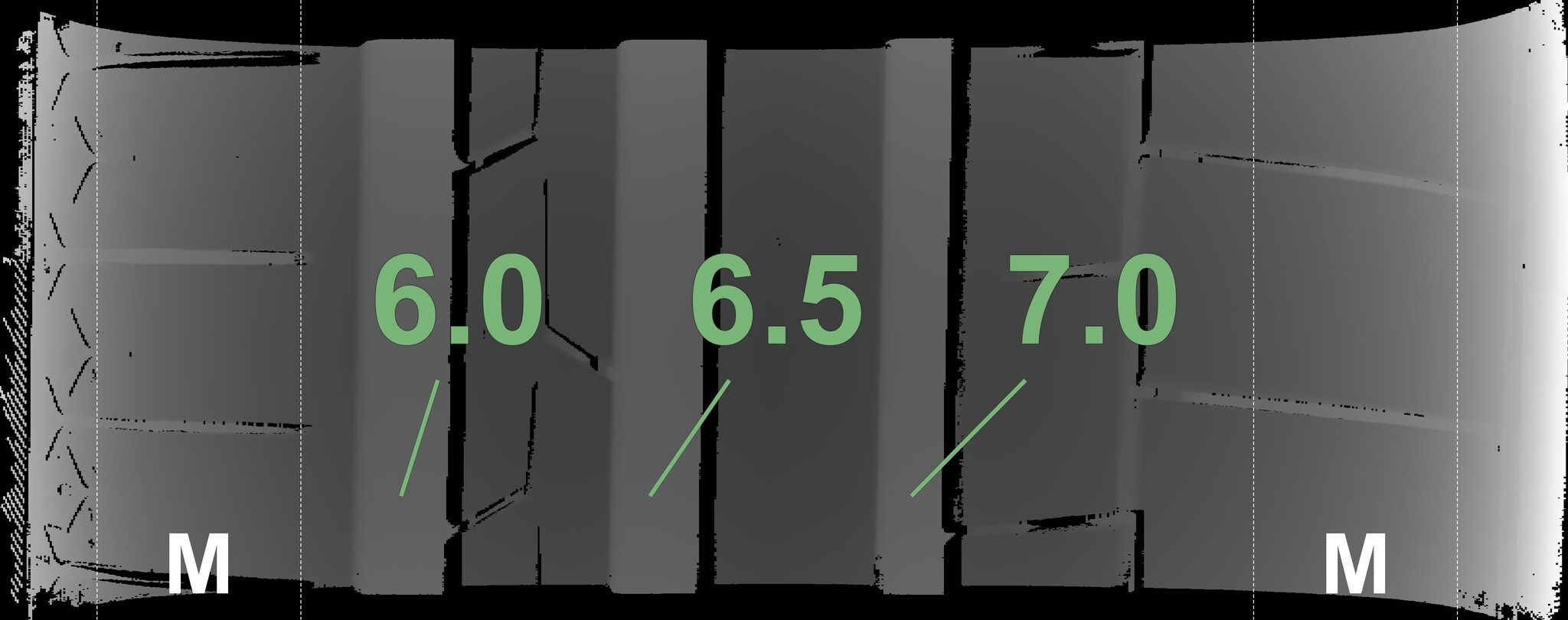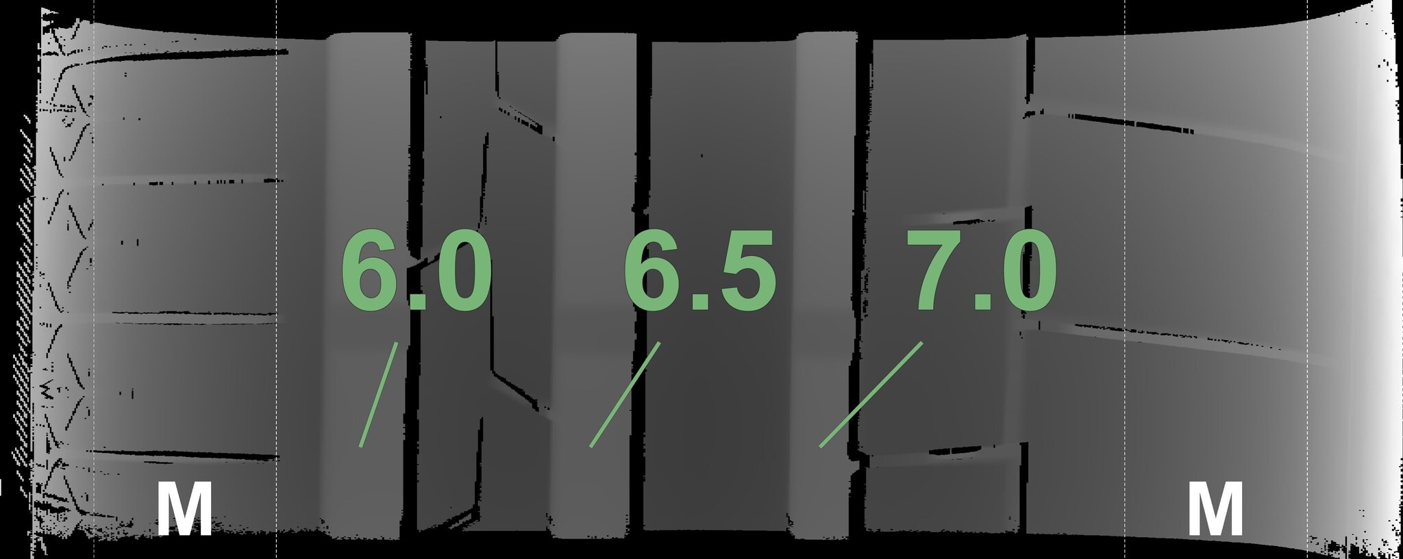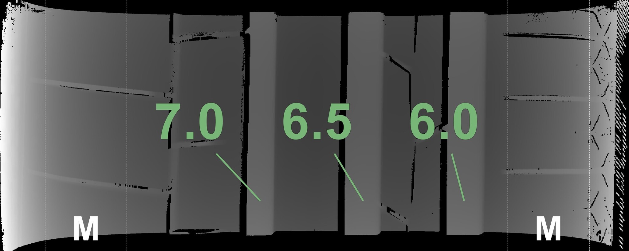 De gemeten profieldieptes en de details van de velgen zijn hierboven weergegeven.