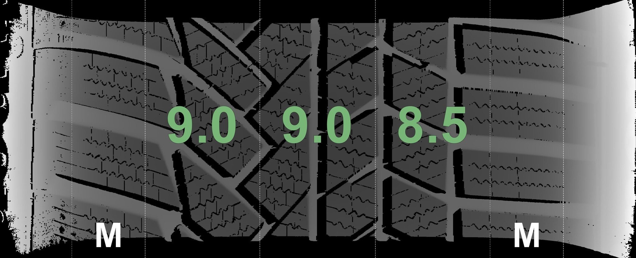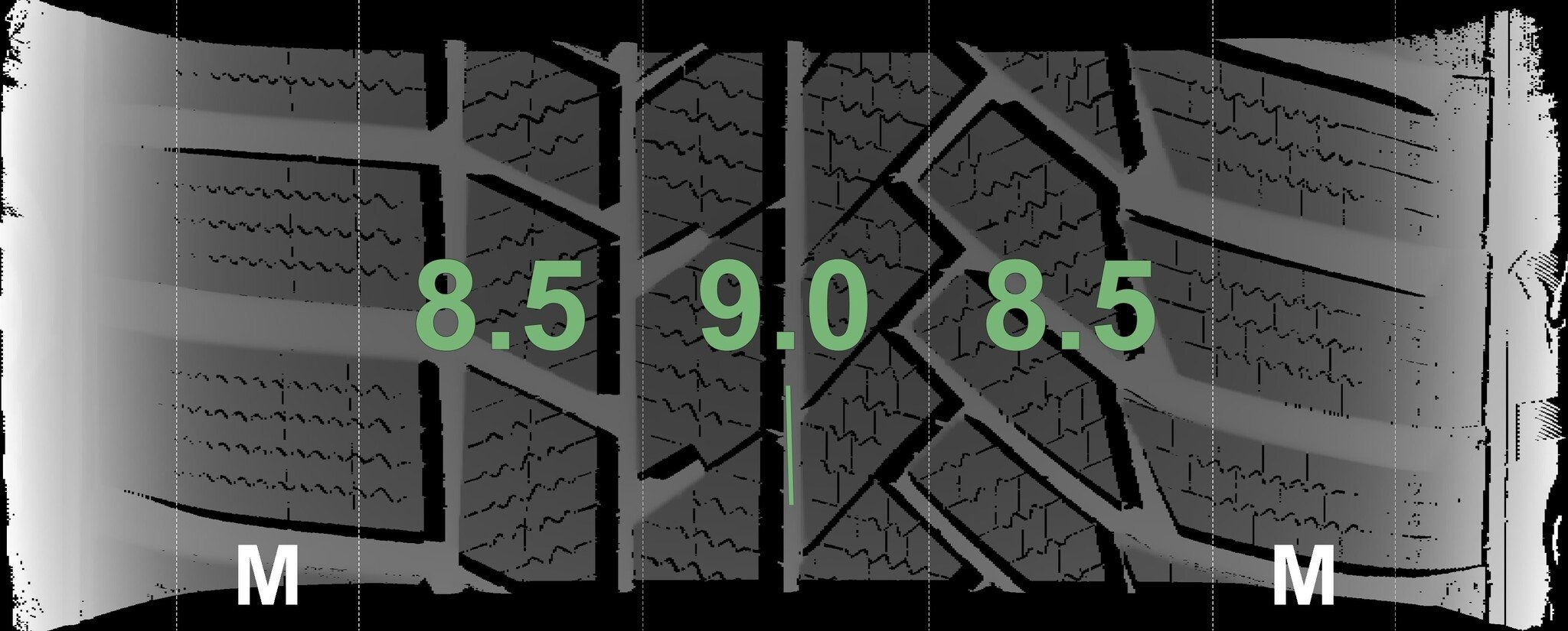 De gemeten profieldieptes en de details van de velgen zijn hierboven weergegeven.