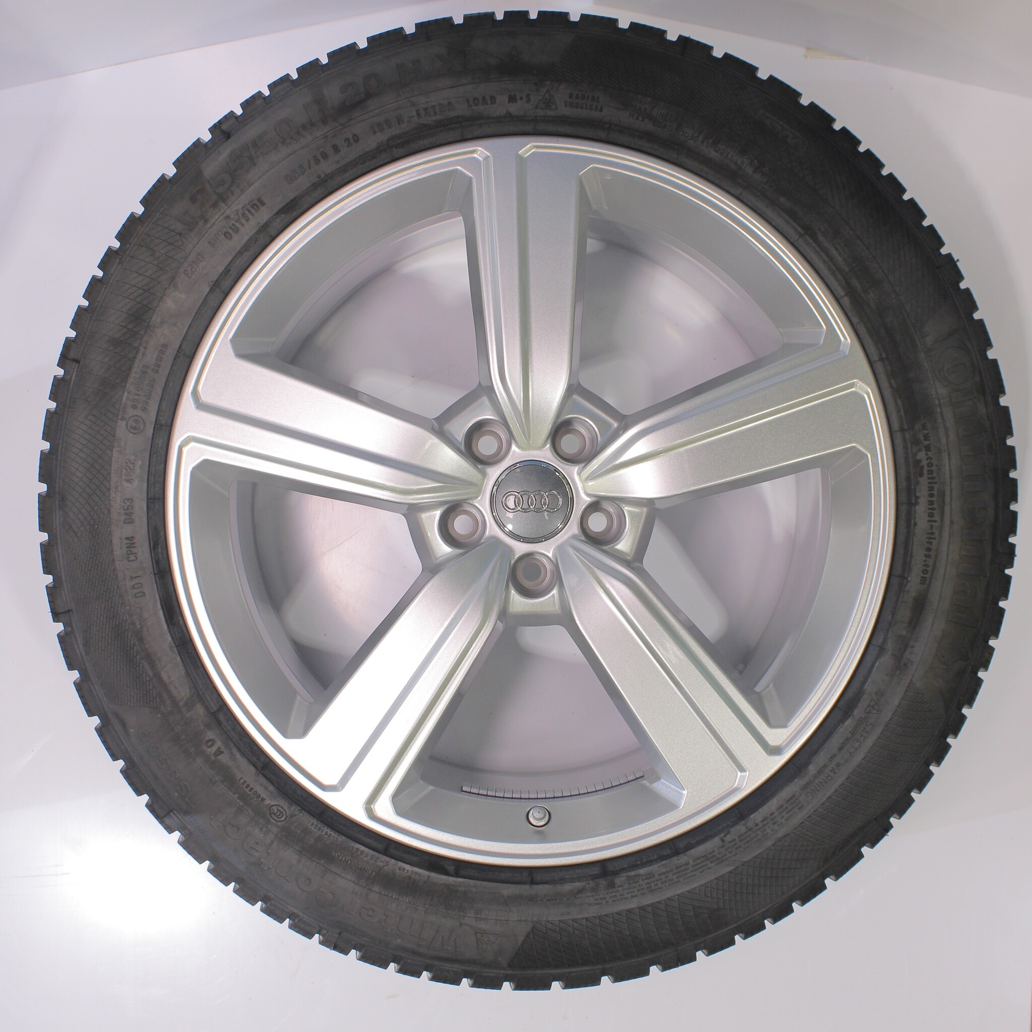 Originele wielset van Audi, 20 inch velgen met Continental WINTER CONTACT TS 850 P Winterbanden. Deze velgen zijn originele velgen van het merk Audi en geschikt voor: Audi e-tron GE Q8 e-tron.