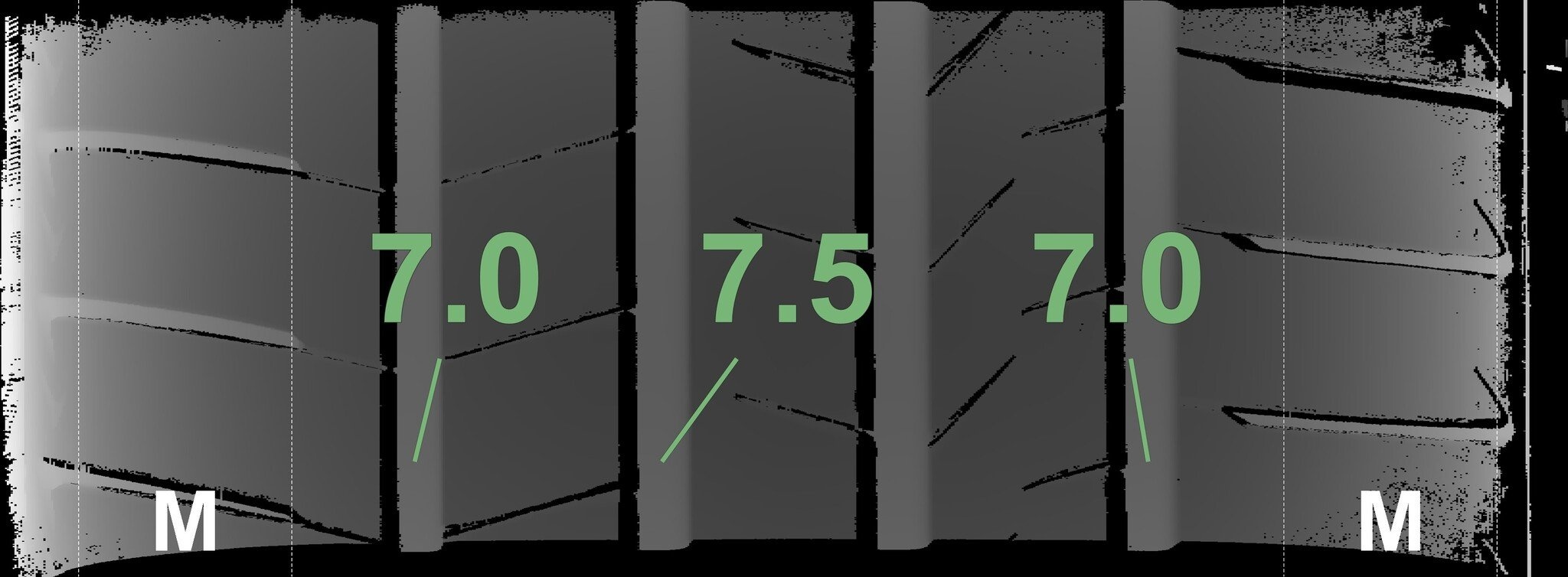 De gemeten profieldieptes en de details van de velgen zijn hierboven weergegeven.