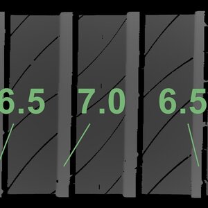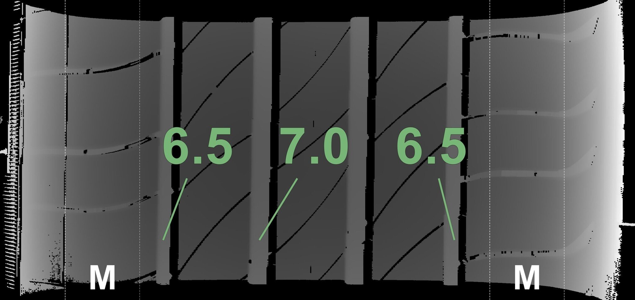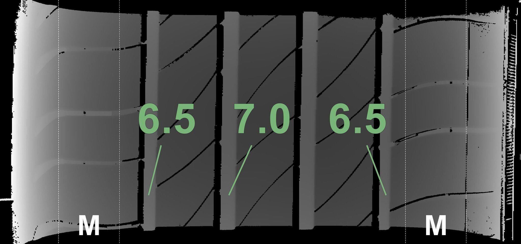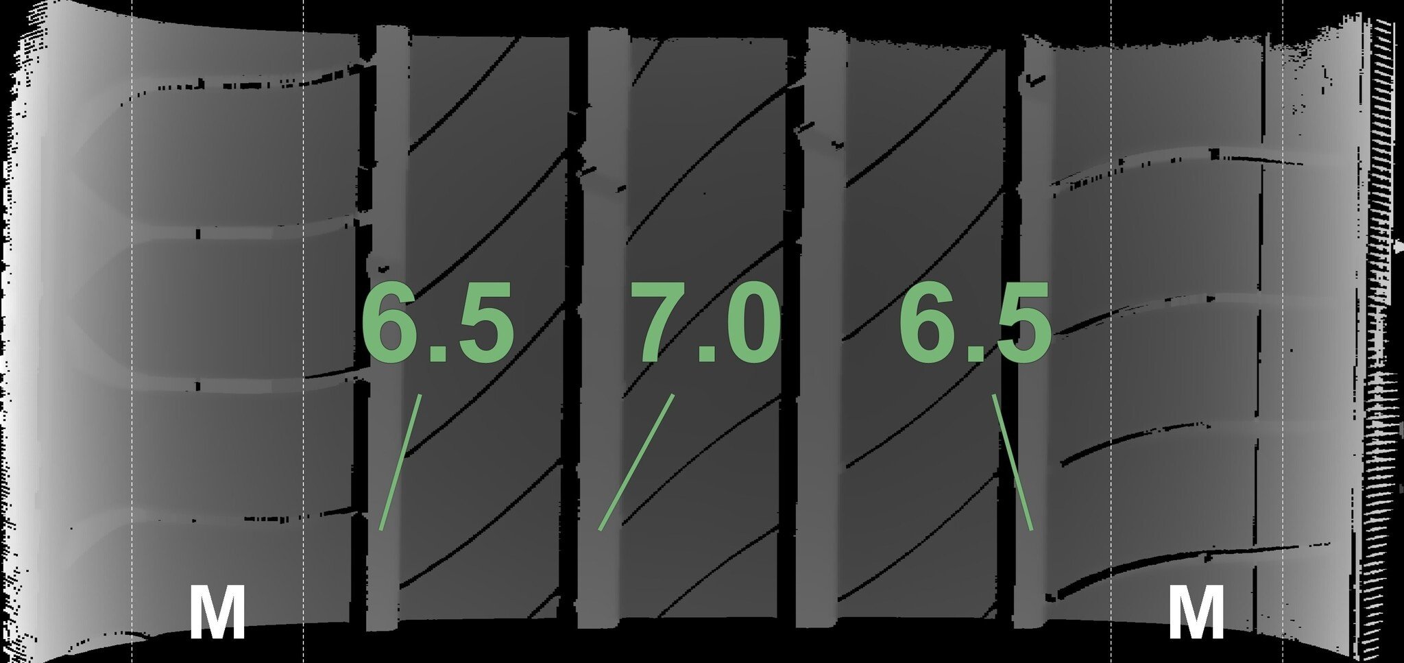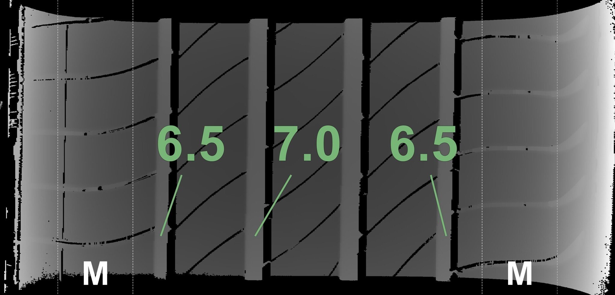 De gemeten profieldieptes en de details van de velgen zijn hierboven weergegeven.