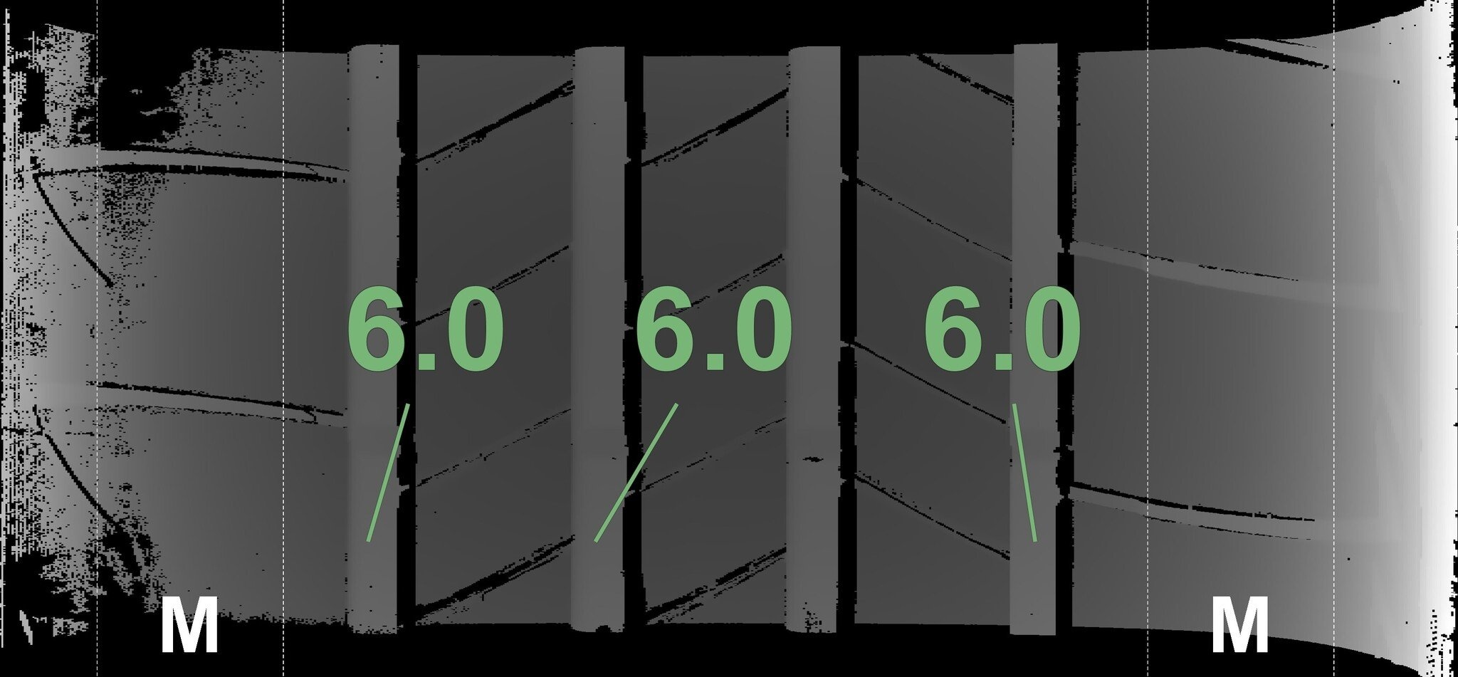 De gemeten profieldieptes en de details van de velgen zijn hierboven weergegeven.