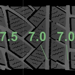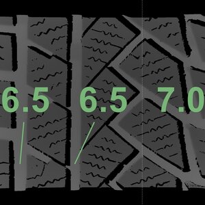 De gemeten profieldieptes en de details van de velgen zijn hierboven weergegeven.