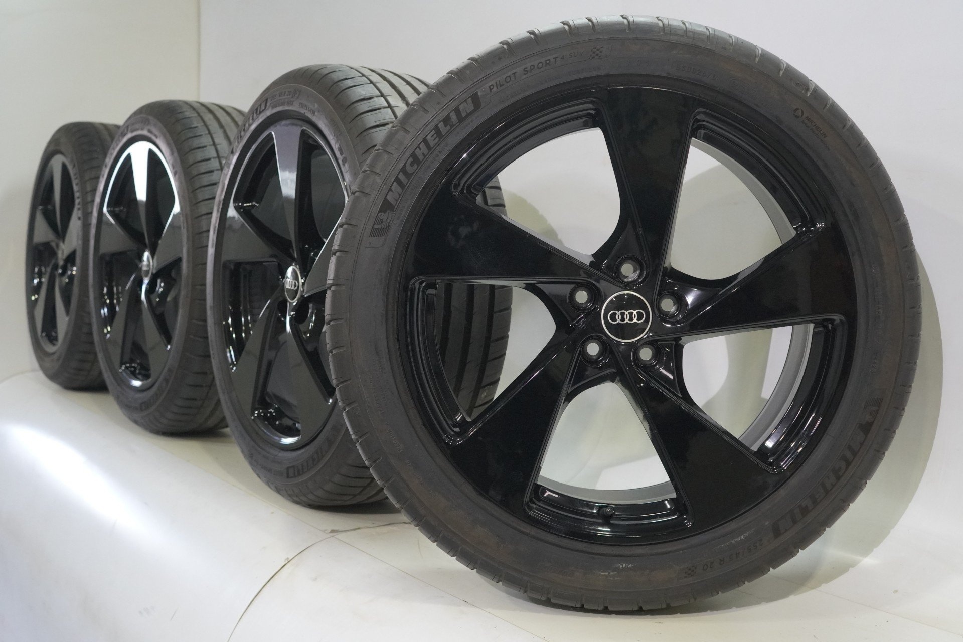 Originele wielset van Audi, 20 inch velgen met Michelin Pilotsport4 Zomerbanden. Deze velgen zijn originele velgen van het merk Audi en geschikt voor: Audi Q5 8MA.