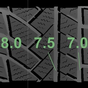 De gemeten profieldieptes en de details van de velgen zijn hierboven weergegeven.