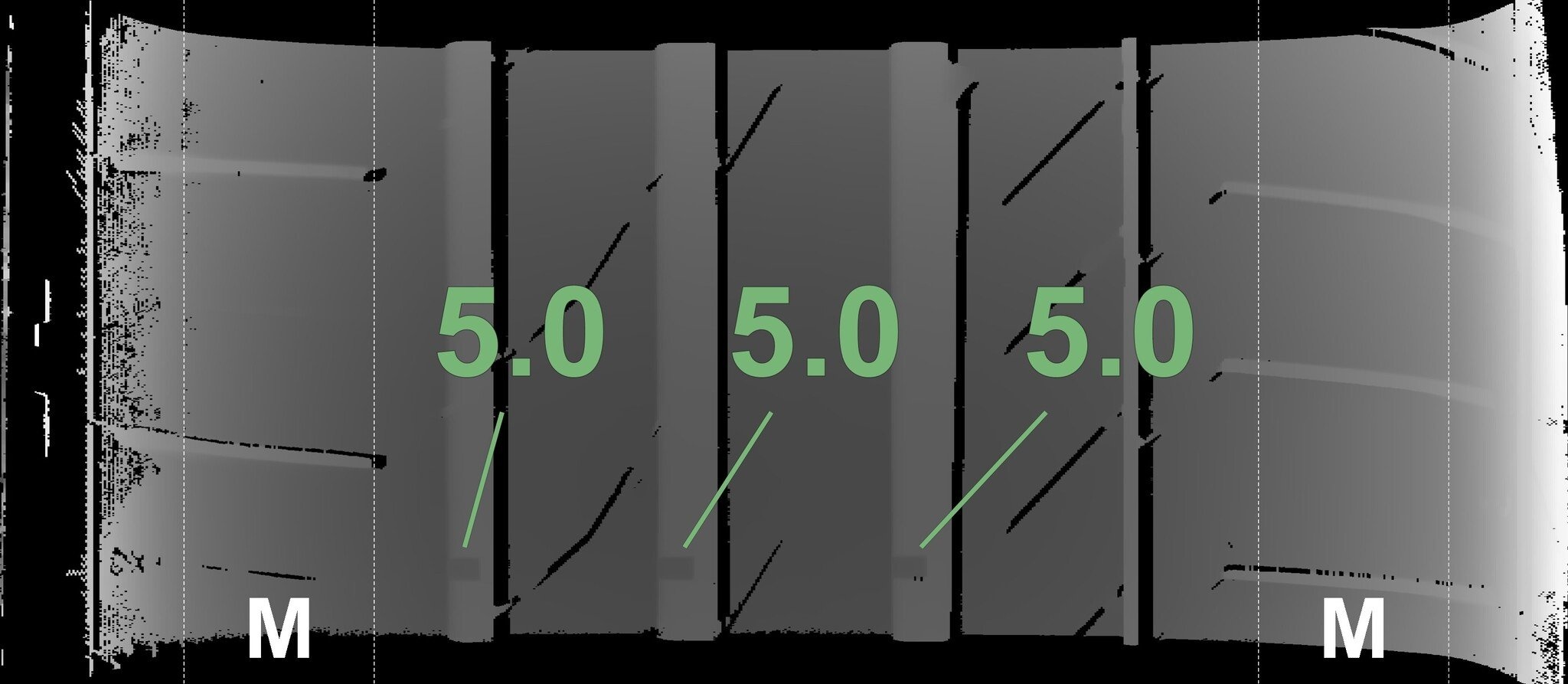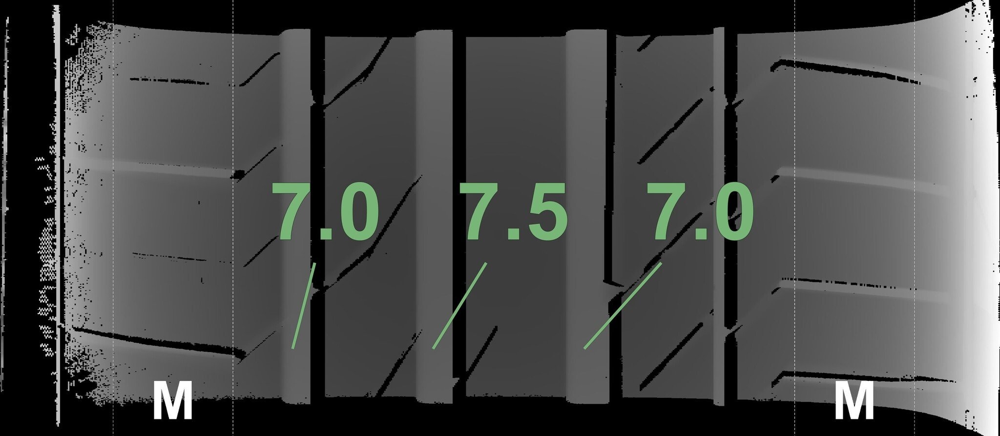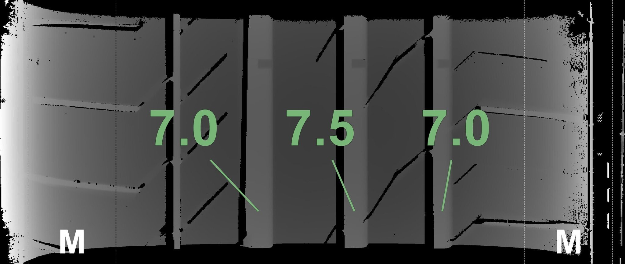 De gemeten profieldieptes en de details van de velgen zijn hierboven weergegeven.