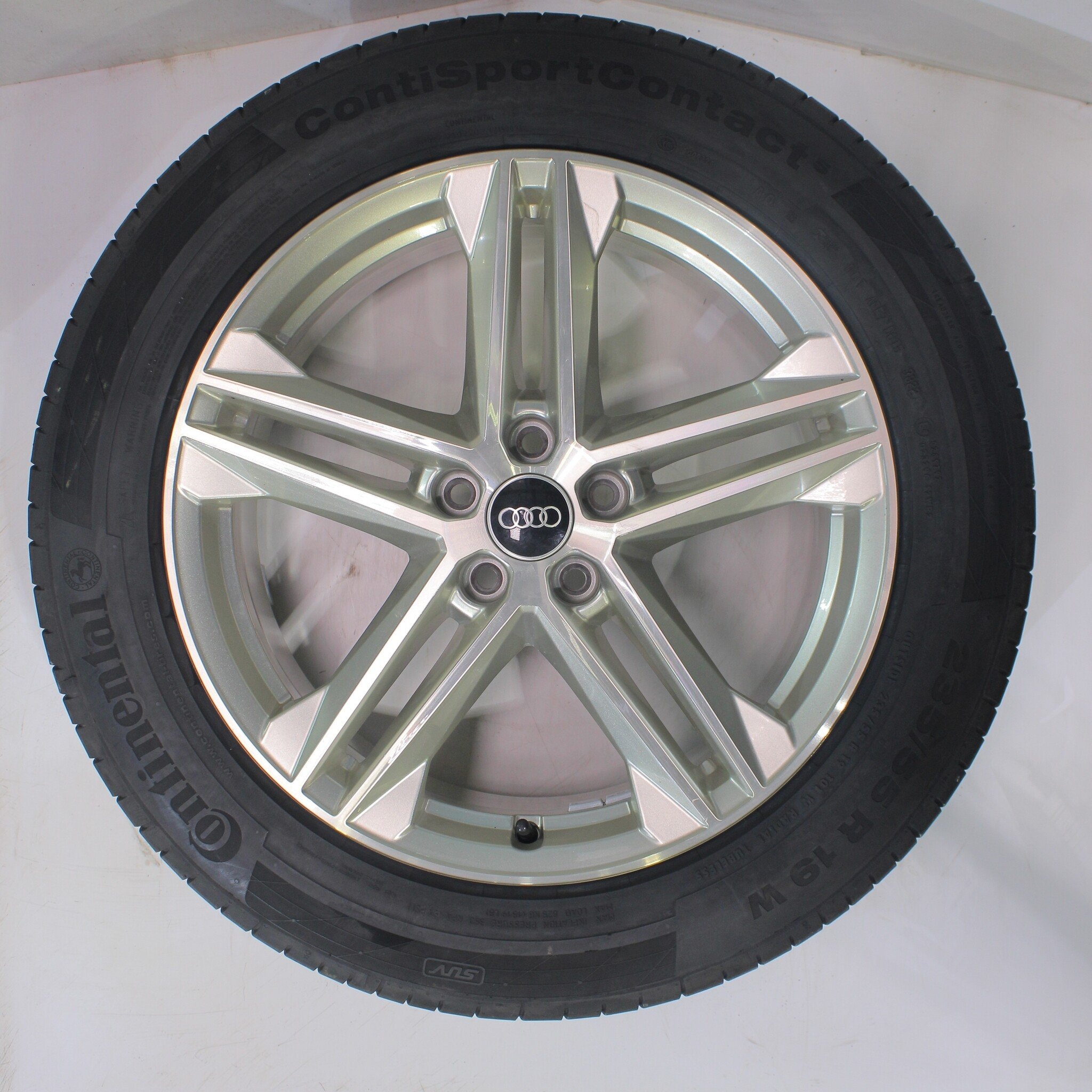 Originele wielset van Audi, 19 inch velgen met Continental SportContact 5 Zomerbanden. Deze velgen zijn originele velgen van het merk Audi en geschikt voor: Audi Q5 SQ5 80A.