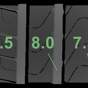 De gemeten profieldieptes en de details van de velgen zijn hierboven weergegeven.