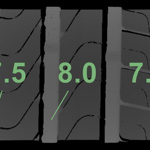 | Conditie | Profieldiepte | DOT | Rechts Achter | Demo nopjes nog zichtbaar | 7.5 mm | 2123 |