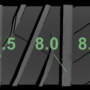 De gemeten profieldieptes en de details van de velgen zijn hierboven weergegeven.