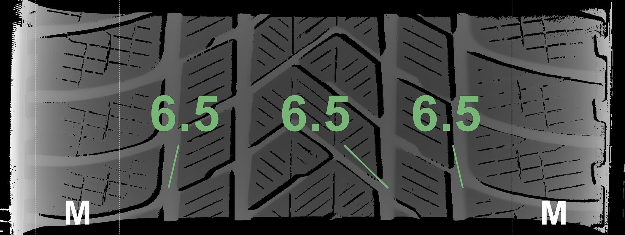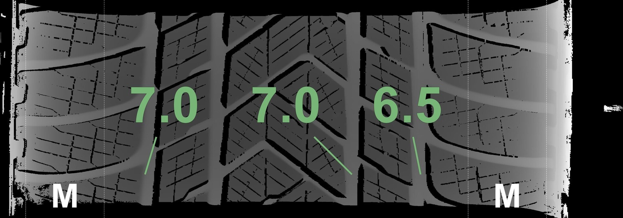 De gemeten profieldieptes en de details van de velgen zijn hierboven weergegeven.