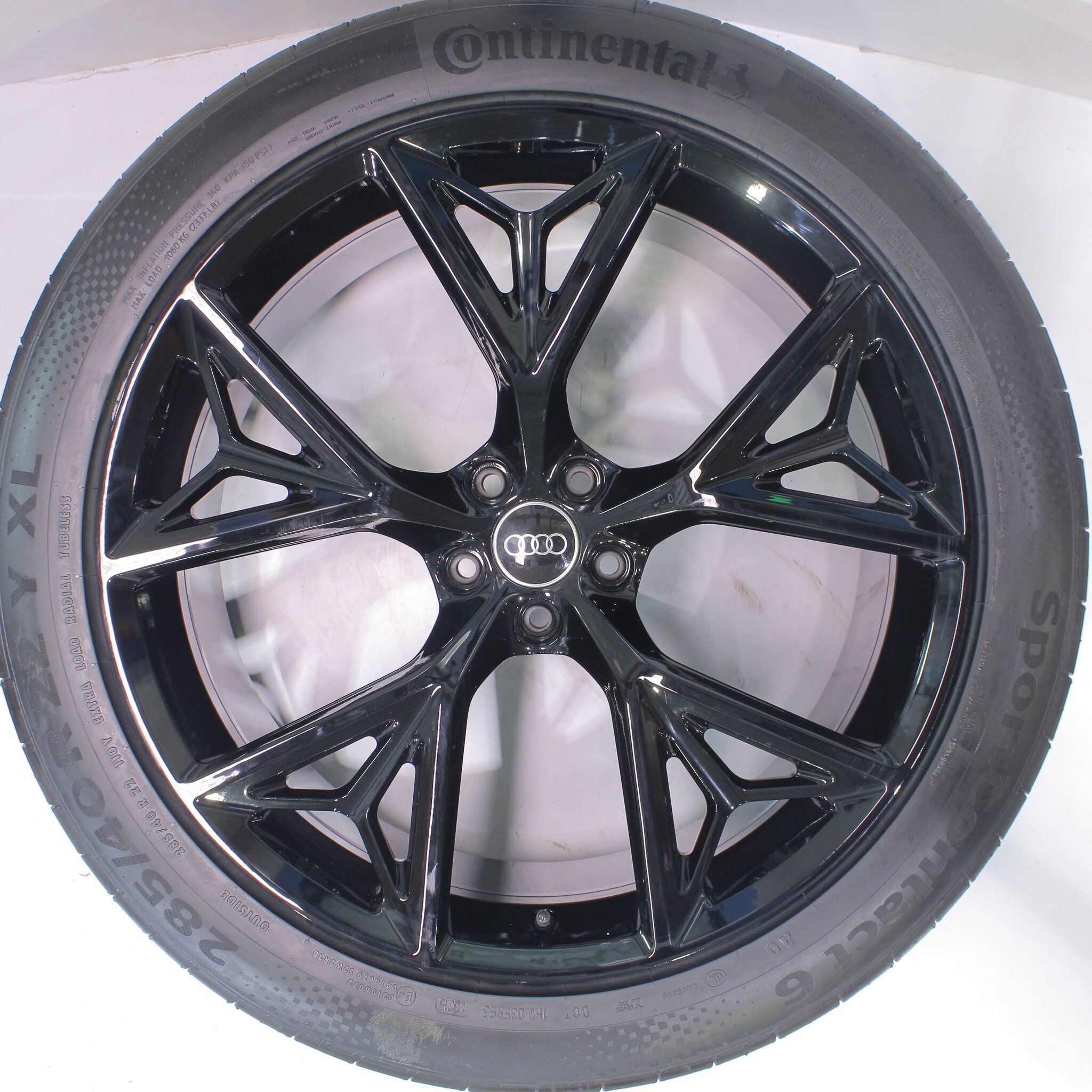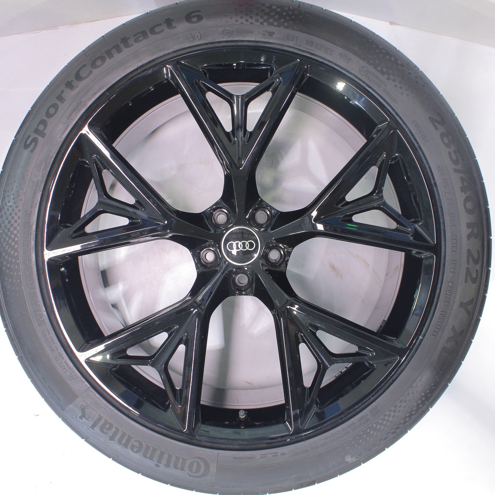 Originele wielset van Audi, 22 inch velgen met Continental SPORT CONTACT 6 Zomerbanden. Deze velgen zijn originele velgen van het merk Audi en geschikt voor: Audi Q8 SQ8 RSQ8.
