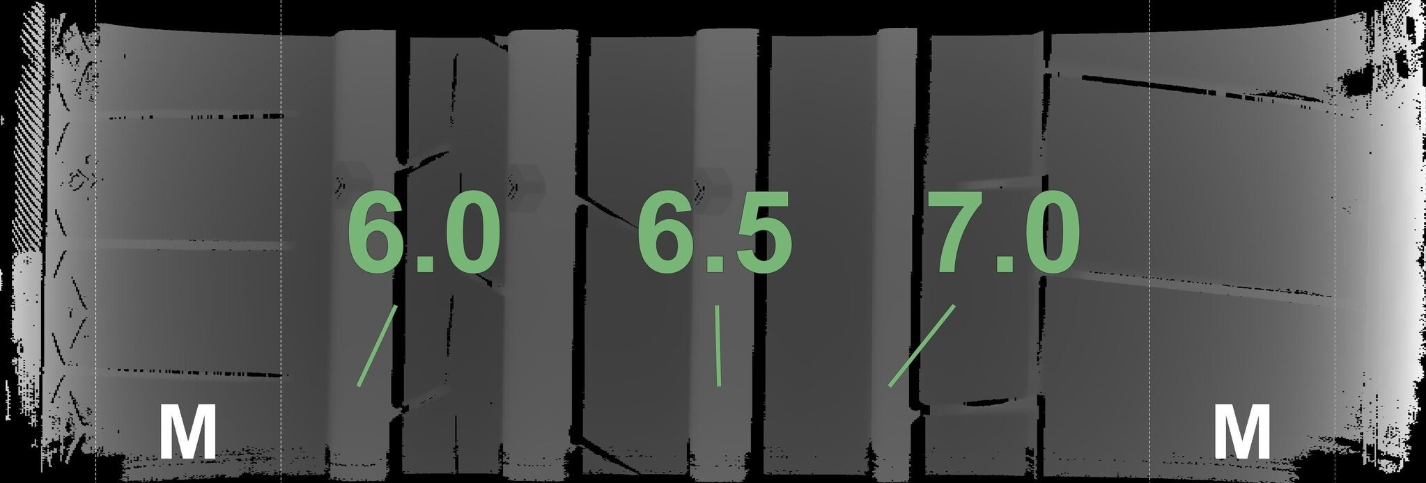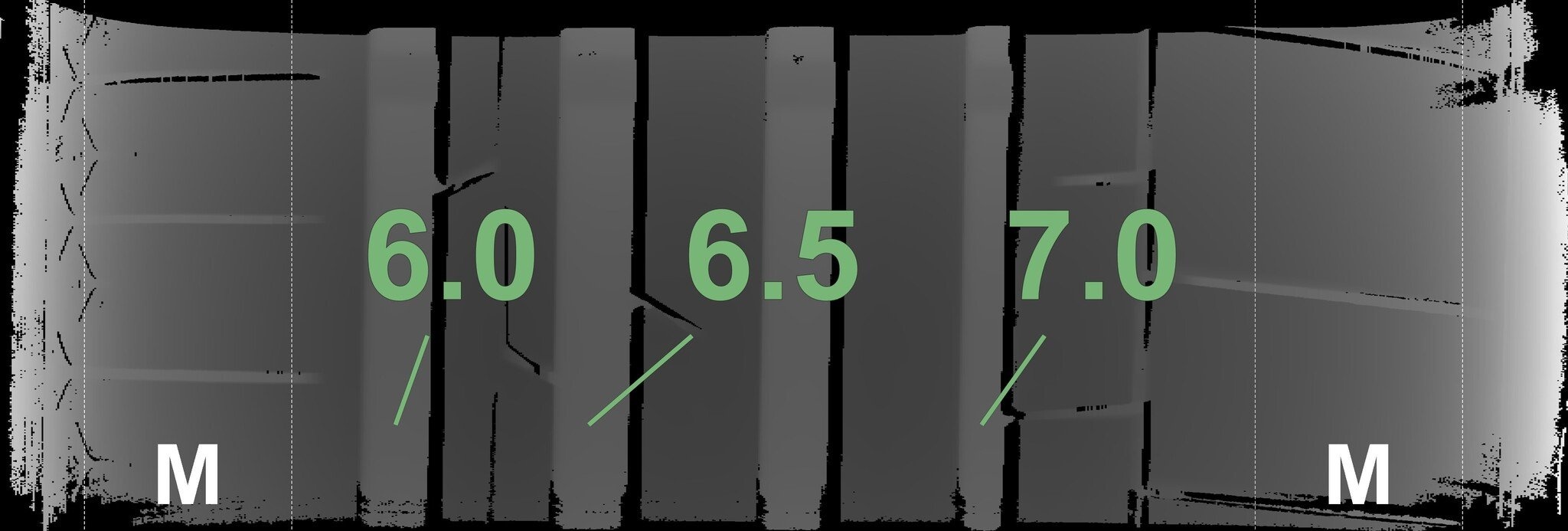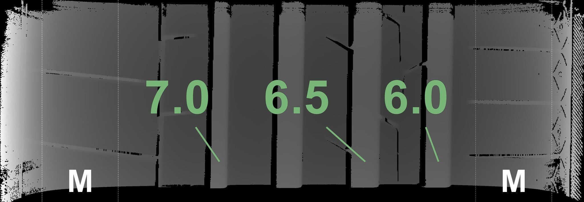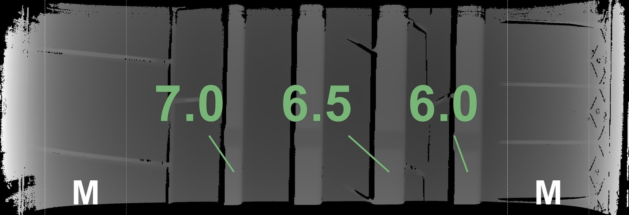 De gemeten profieldieptes en de details van de velgen zijn hierboven weergegeven.