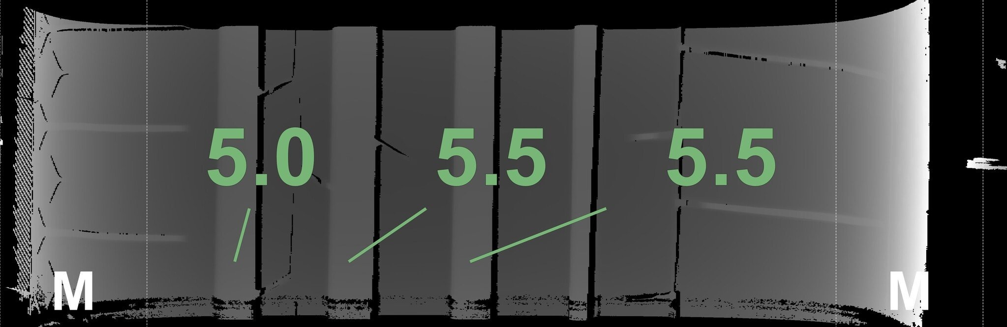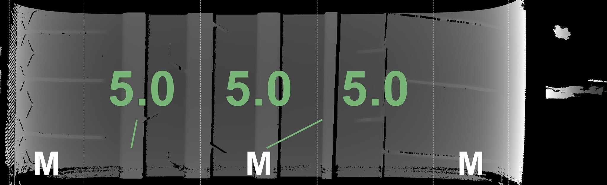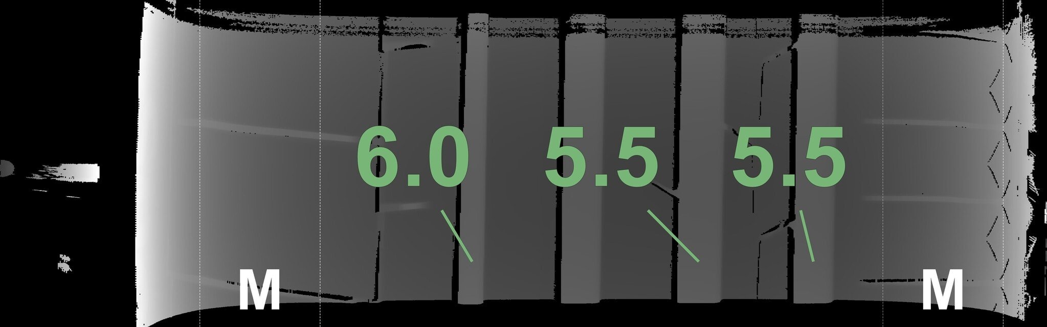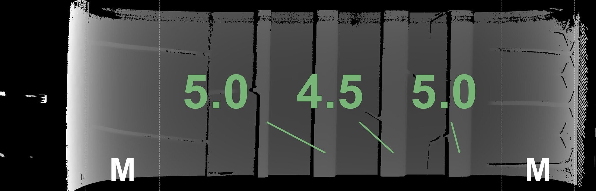 De gemeten profieldieptes en de details van de velgen zijn hierboven weergegeven.