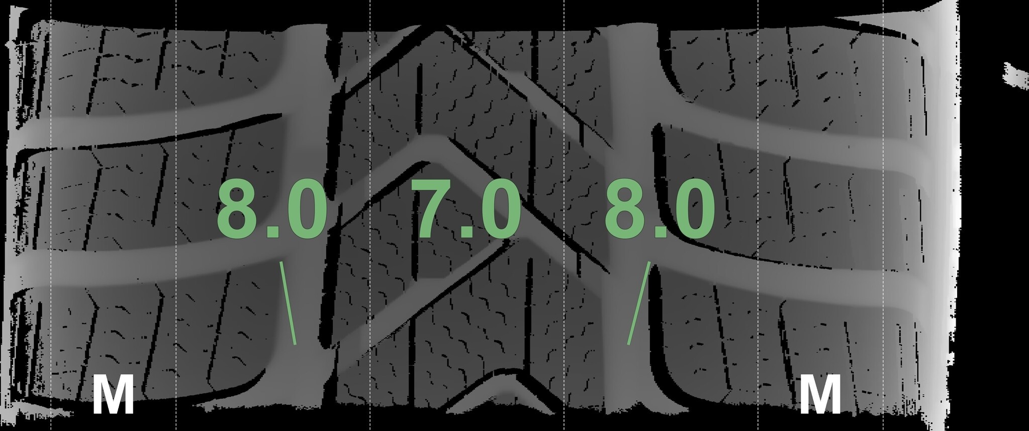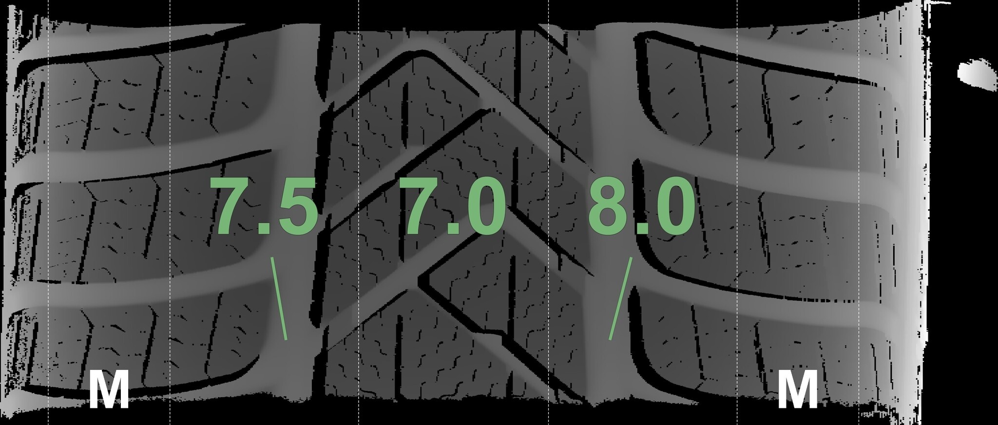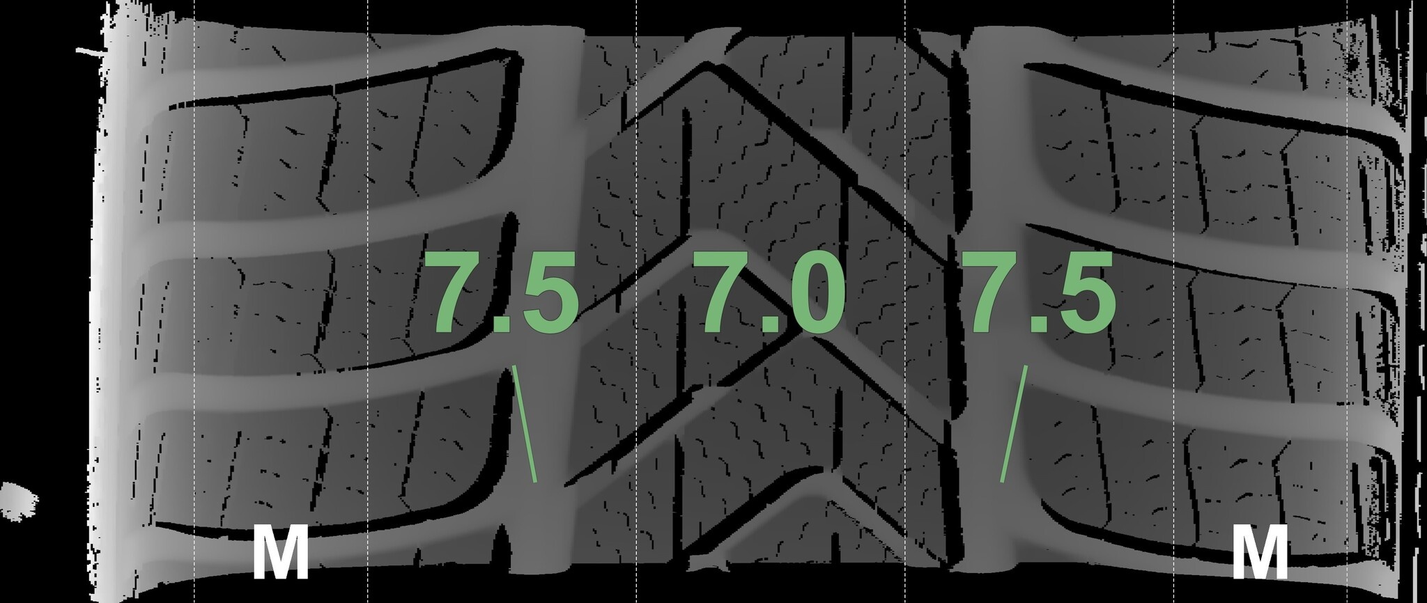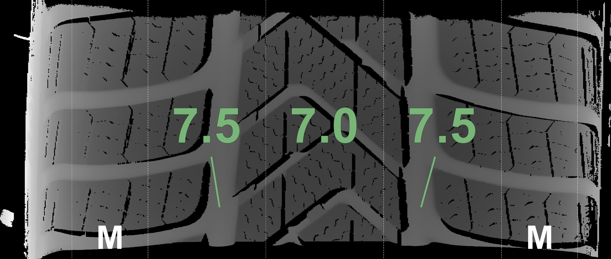 De gemeten profieldieptes en de details van de velgen zijn hierboven weergegeven.